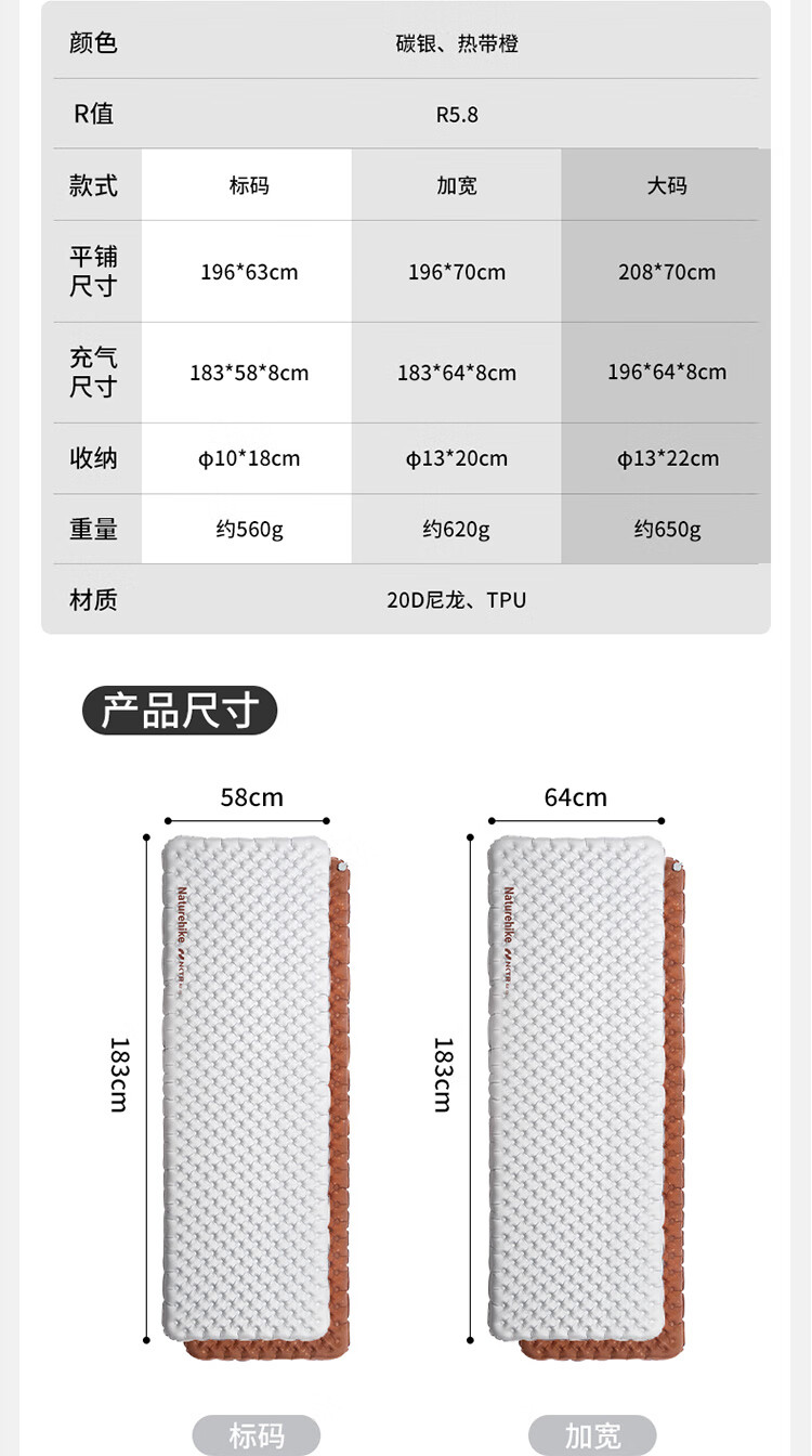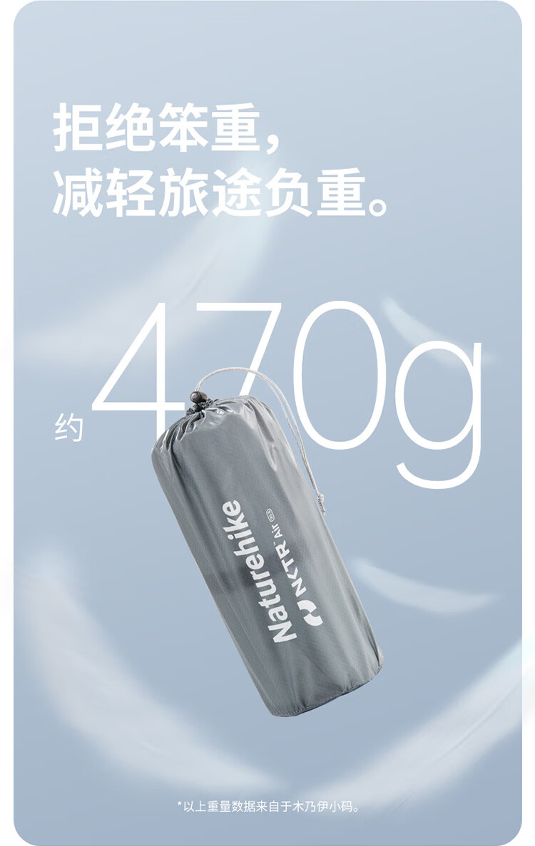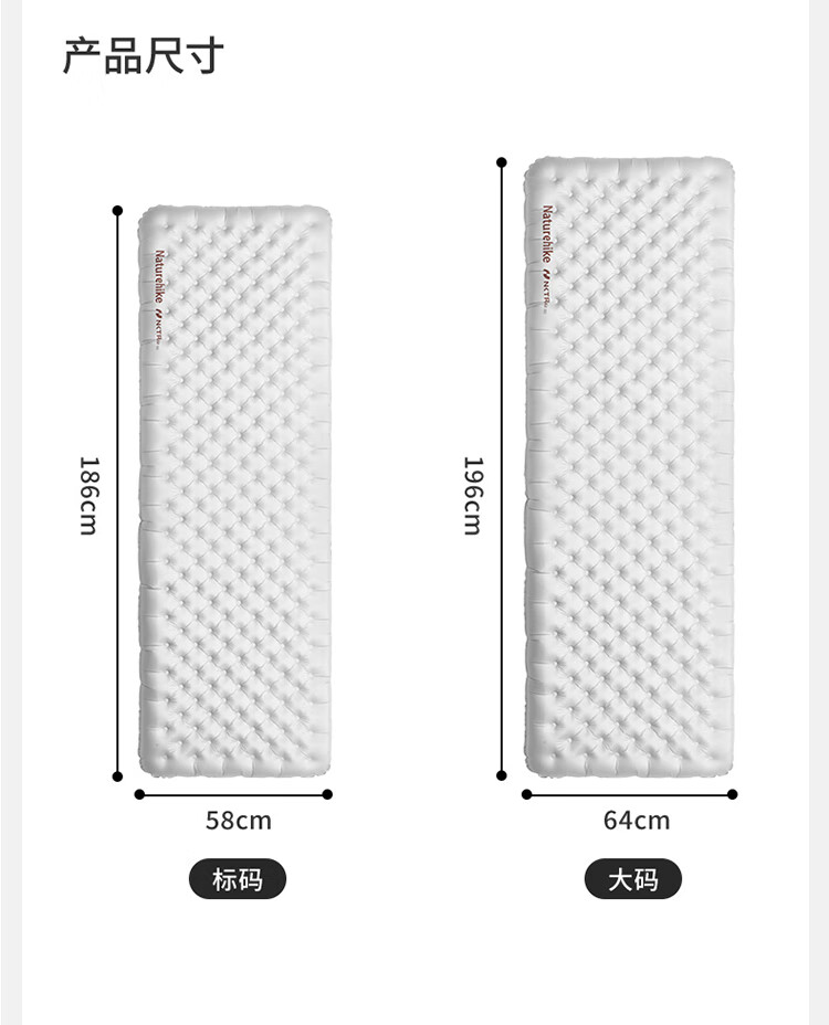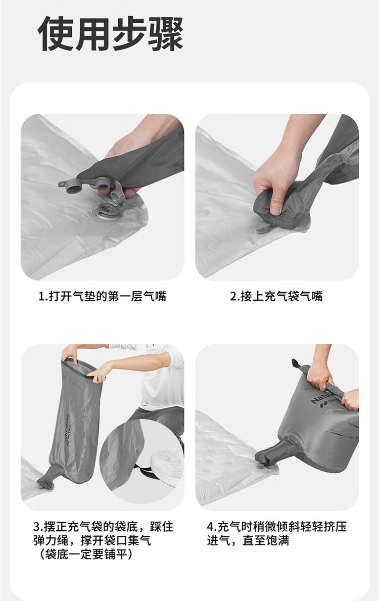 Naturehike挪客徒野高r值防潮垫超轻充气垫户外露营地垫便携睡垫打地铺 岩石灰186*64cm/赠充气袋-R值3.2