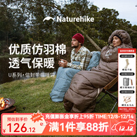 Naturehike挪客睡袋成人大人户外冬季加厚保暖棉睡袋露营野营睡袋双人睡袋 羽绒棉/艾叶青 U250S+充气枕头