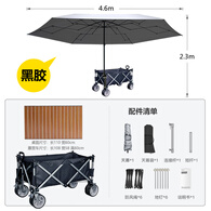 迈牛黑胶天幕露营车营地拖车可以折叠移动户外摆摊遮阳伞手拉车二合一 4.6米天幕黑胶+黑色聚拢车带桌板