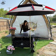 鹿营地摆摊推车露营车一体车小吃车超大款聚拢可升降地摊移动夜市餐车 PLUS宽 170x72黑桌+黑车+黑伞