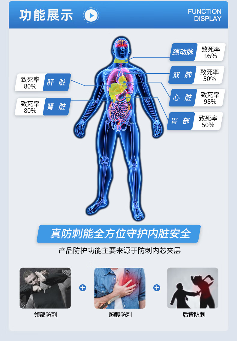 高甲防护防刺服 轻便薄款贴身软质全身冲锋外套防刺衣执勤锁子甲防割外套 身高185-190/体重85-95【XL码】