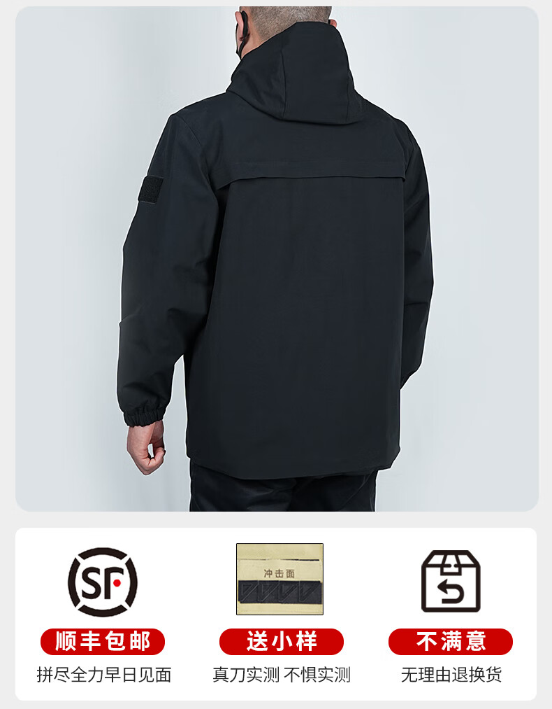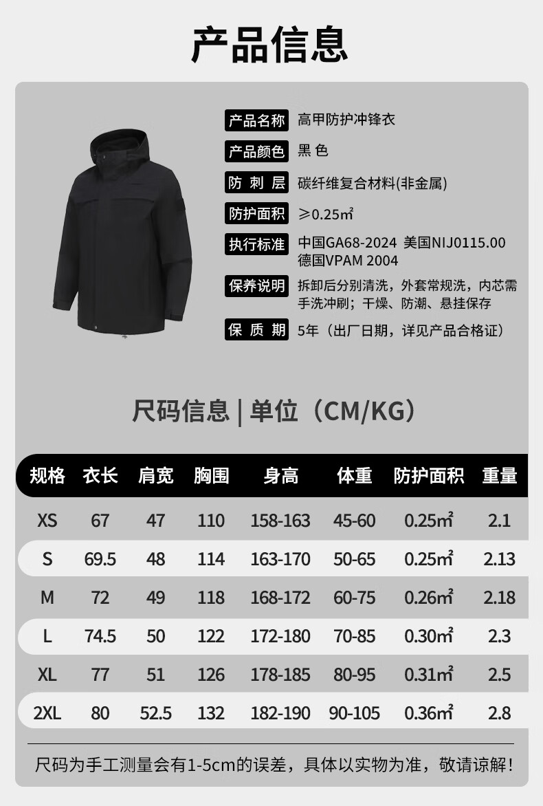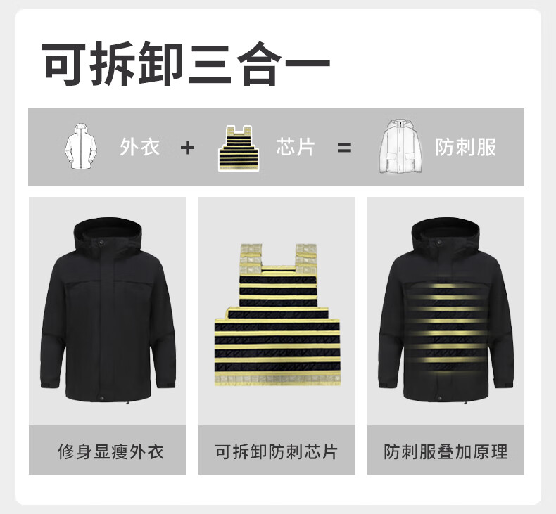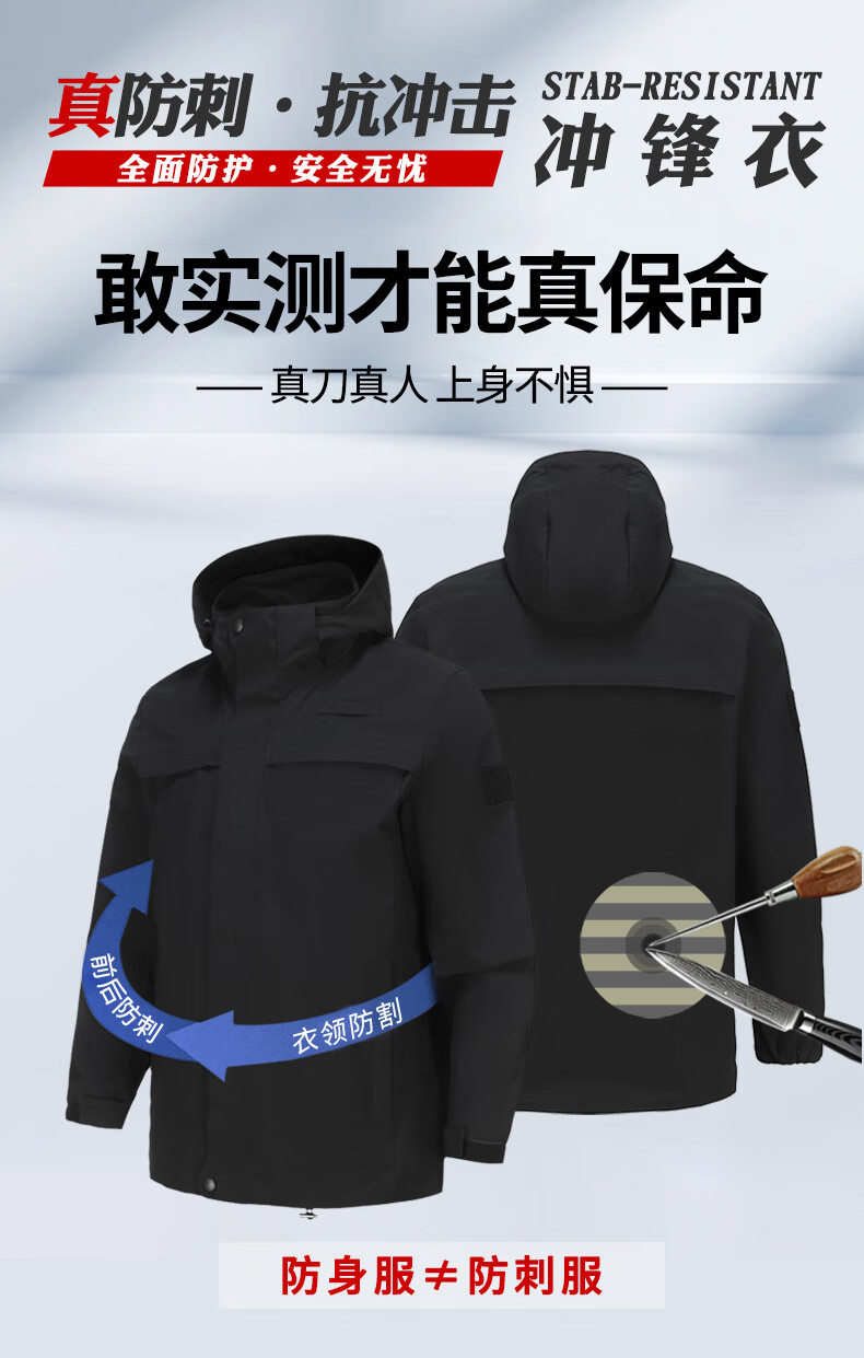 高甲防护柔性防刺服软质防刺衣冲锋外套军迷装备安保户外夹克全身隐形防刀 男款-黑色 XL (178-185cm/80-95kg)