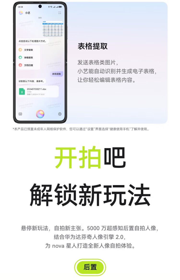 华为 novaFlip 折叠屏手机 鸿蒙AI趣玩 轻薄后置5000万悬停自拍手机 nova Flip 向新绿 12G+512GB 全新官配简配版+全国联保