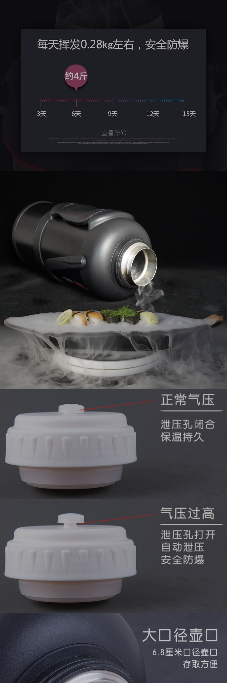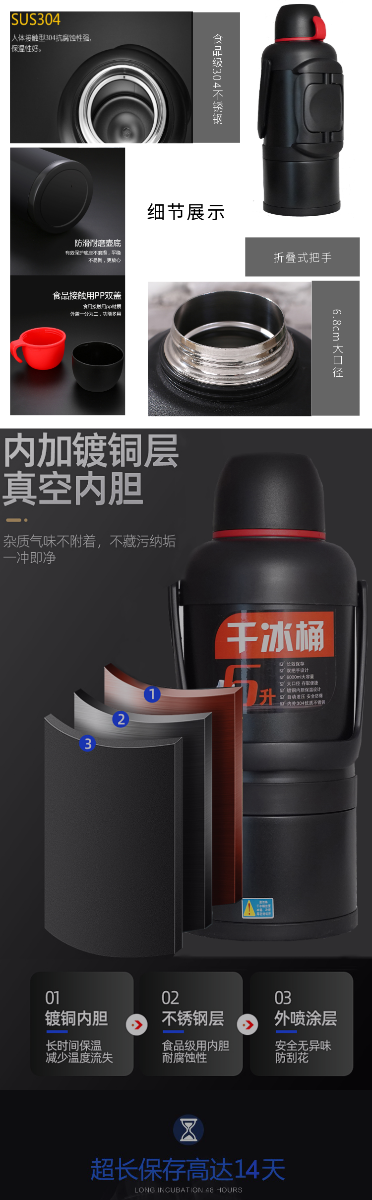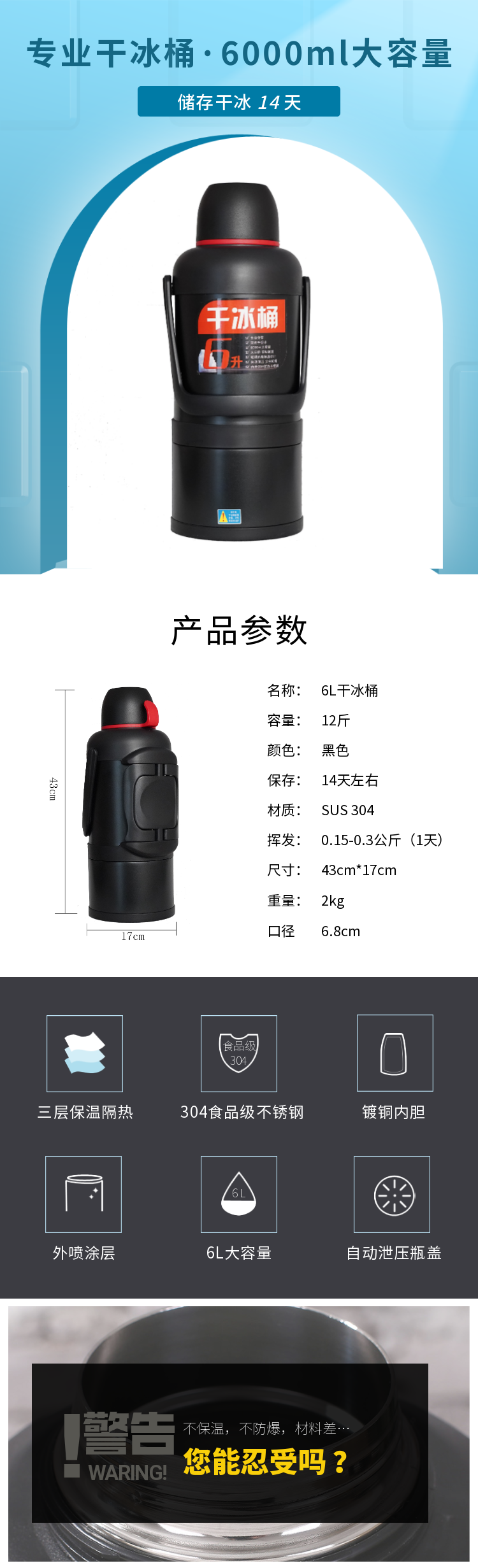 麦凯卓(MaiKaiZ)【干冰桶】超大容量便携式餐饮酒吧防爆保温干冰壶 长效保存6L8L 黑色干冰桶(加干冰夹) 6升干冰桶(新款)