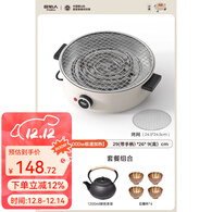 原始人围炉煮茶室内无烟烧烤炉家用室内炉套装电陶炉烧烤炉 山茶围炉+1200ML铸铁壶+花瓣杯*4