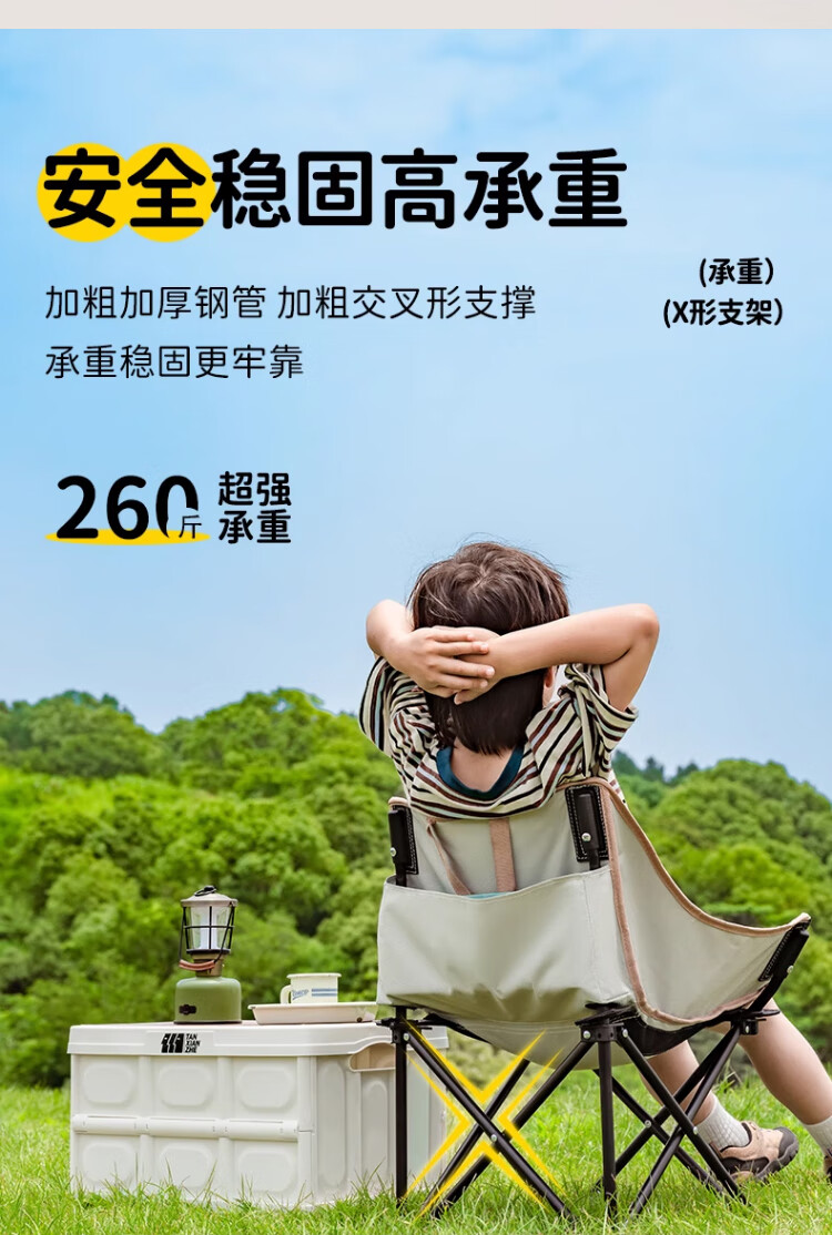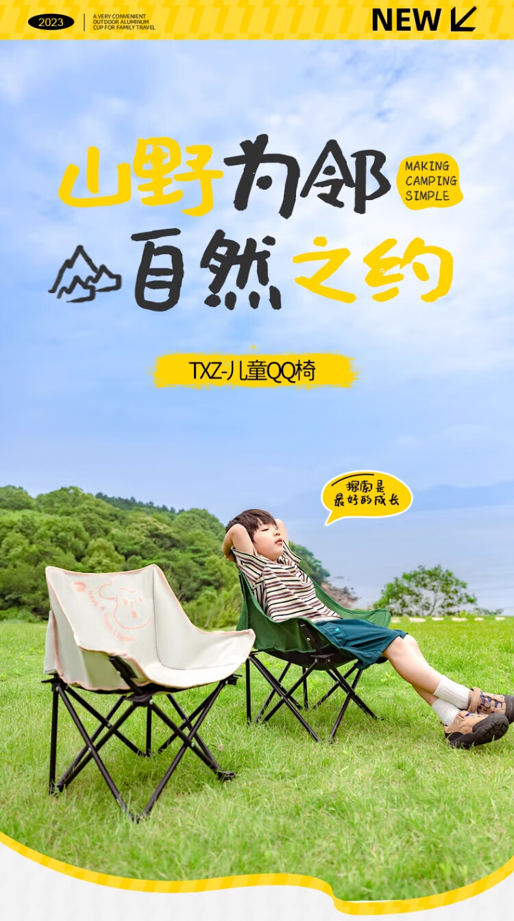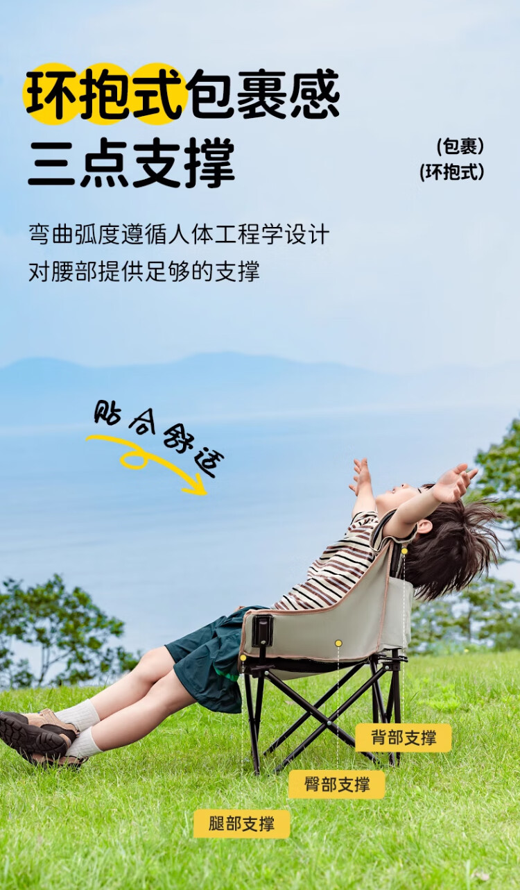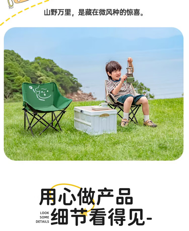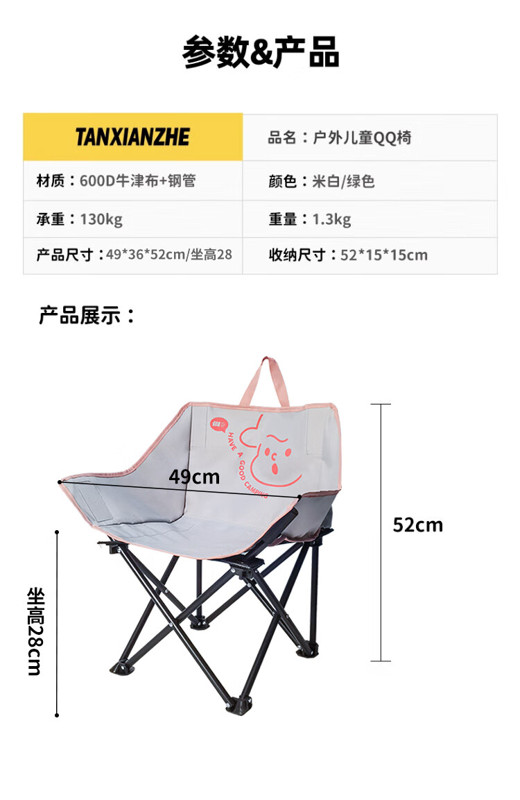 去年买了两条大人的折叠椅,没有考虑到孩子会需要,想着他应该也坐不住。没想到今年出去搭帐篷,他也要坐椅子,所以给他也安排一个儿童折叠椅。