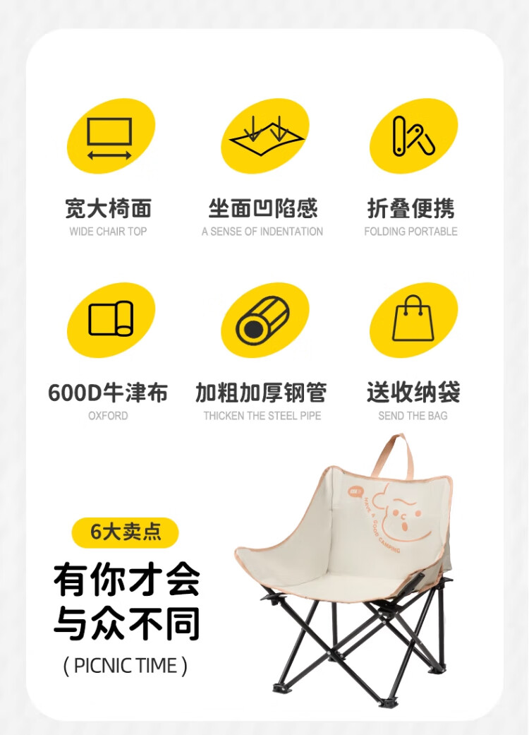 Naturehike挪客便携折叠月亮椅 户外露营休闲办公超轻铝合金钓鱼导演沙滩椅 黑色