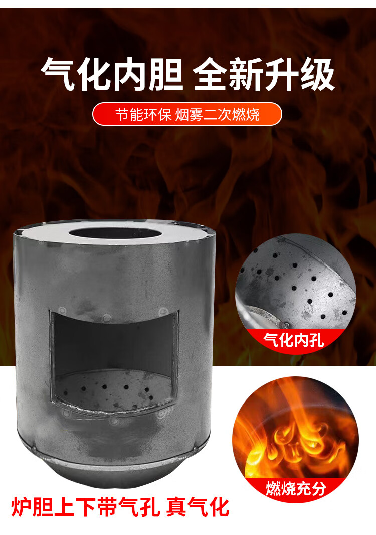 能师傅【送货上门】气化炉家用室内烤火炉柴煤两用节能无烟柴火炉灶农村 单炉体 无配件 无内胆 无底座 无烟道