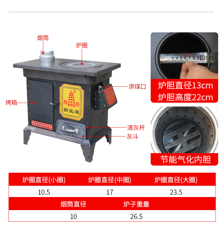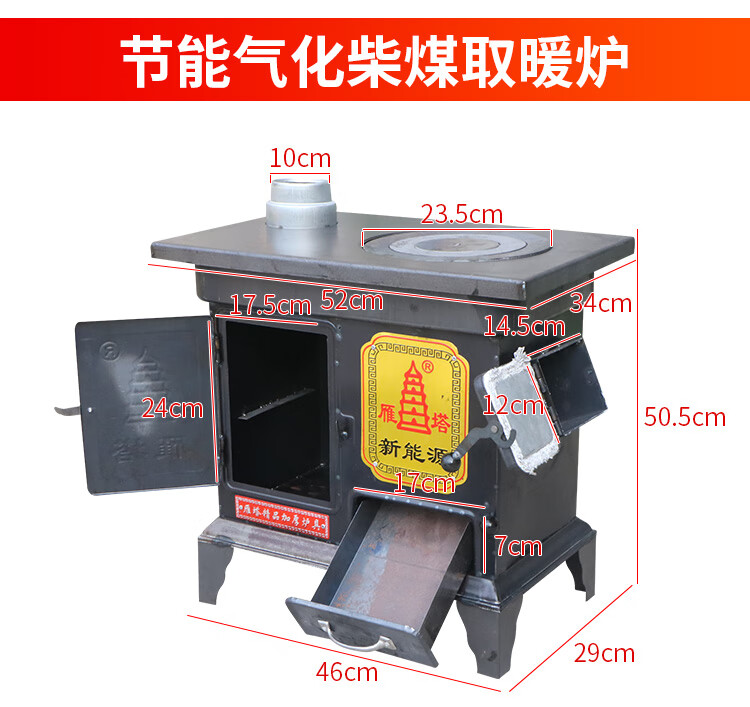 淮果颖新款煤炭取暖炉炉子冬季农无烟柴火室内气化炉柴煤家用两用 新款雁塔前开门烤箱炉 烤箱炉