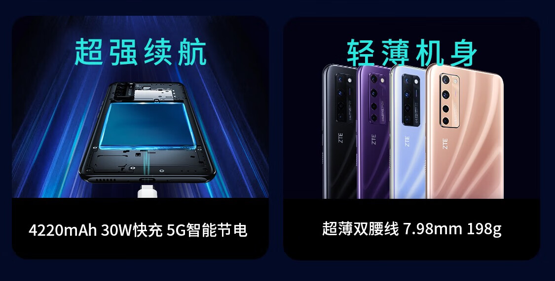 中兴天机40pro ZTE/中兴 Axon40 Ultra A41骁龙8系屏下摄像5G手机 中兴Axon40pro幻夜黑晶雾蓝 256GB