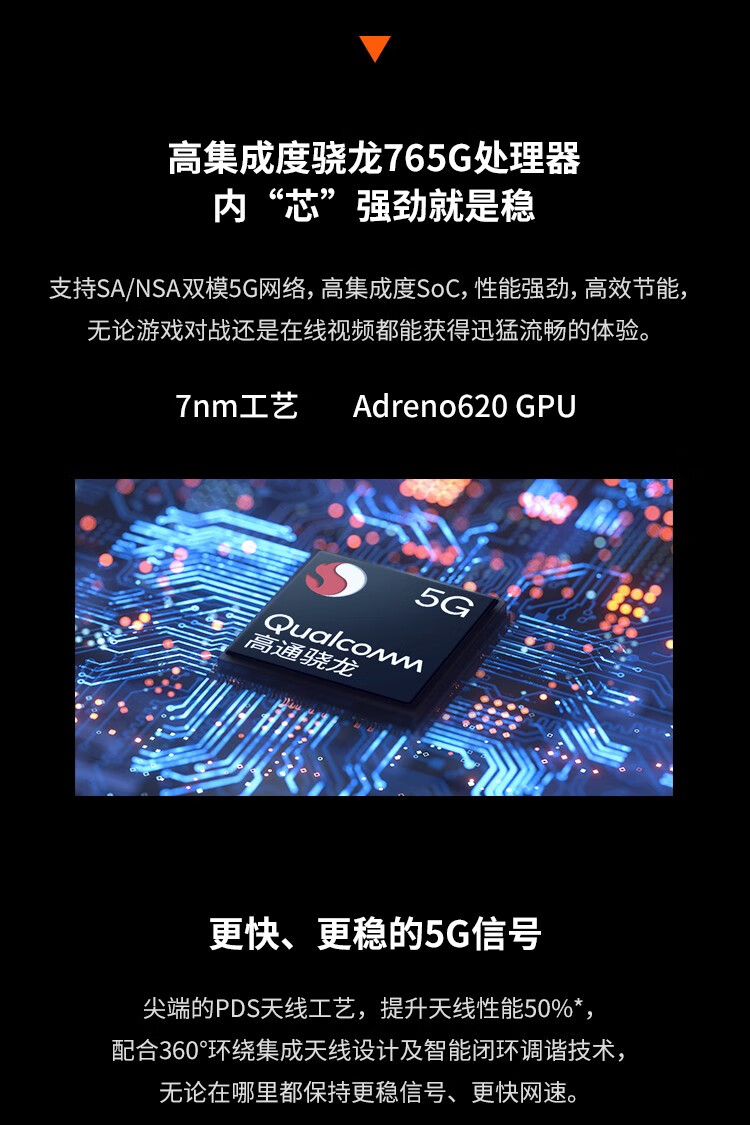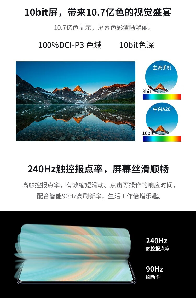 中兴Axon20 全网通5G手机 屏下摄像头 6.92英寸 骁龙765G 90Hz刷新率 8G+256G 95成单机无配件