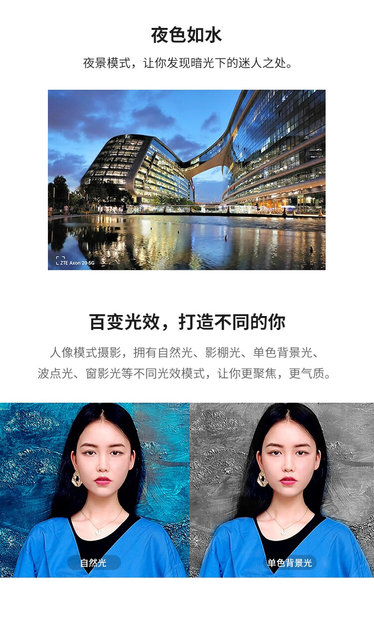 中兴天机Axon 20 A2121 屏下指纹摄像 5G双模手机20 中兴axon20流光海盐8+256G 256GB