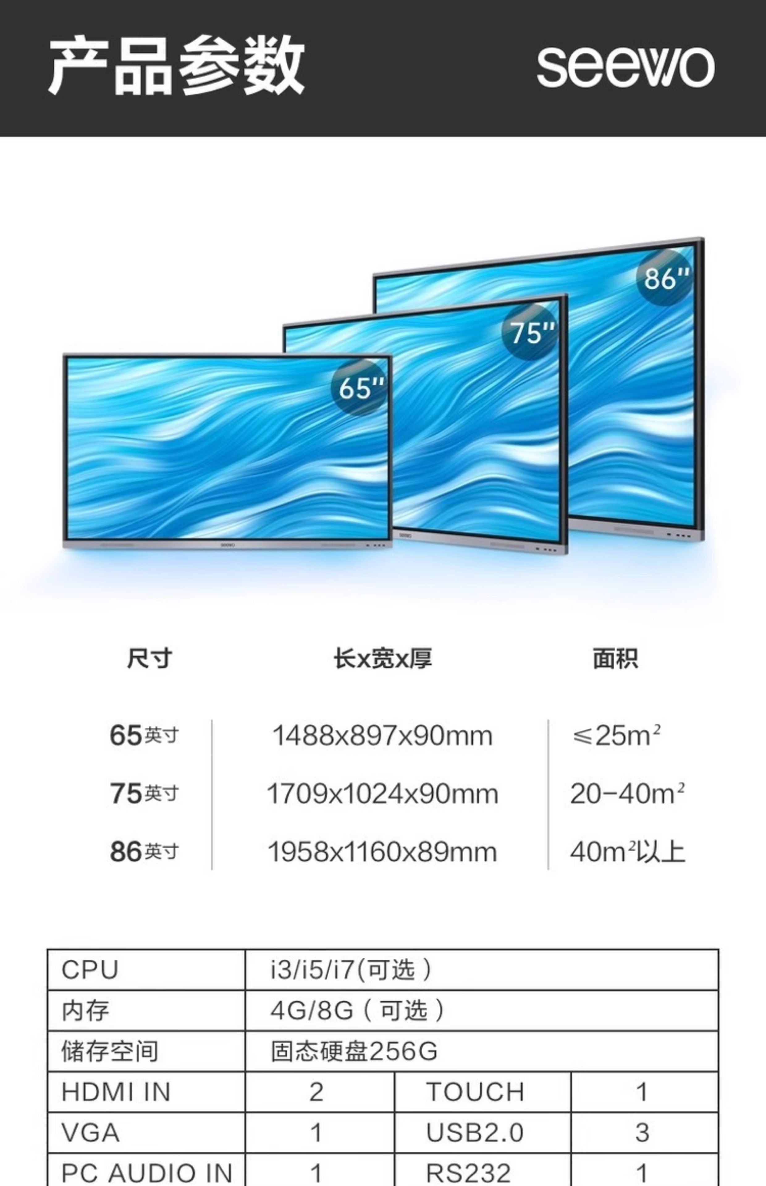 希沃seewo教学一体机FG65EA/FG75EA/FG86EA触屏智能会议交互平 希沃FG65EA(双系统i58+256)壁挂