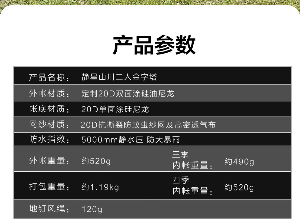 静星静星山川2双人帐篷双面涂硅超轻防暴雨露营徒步登山金字塔A塔 三季内帐