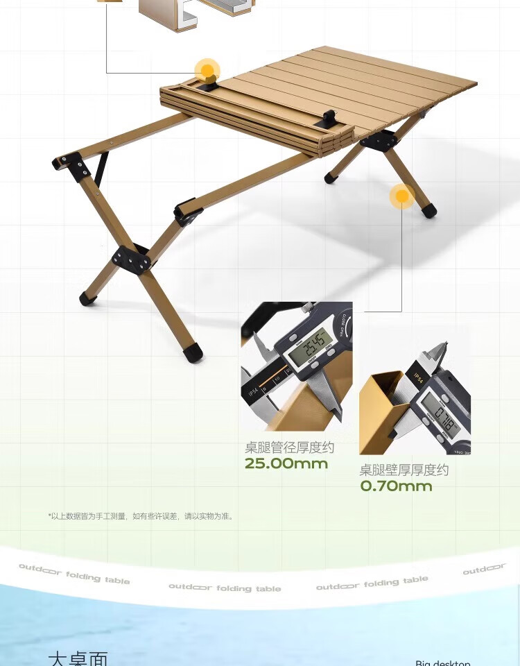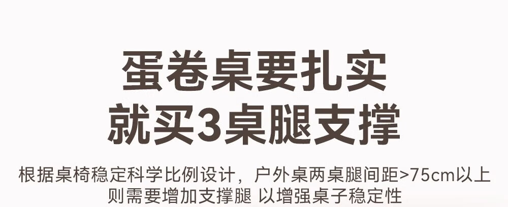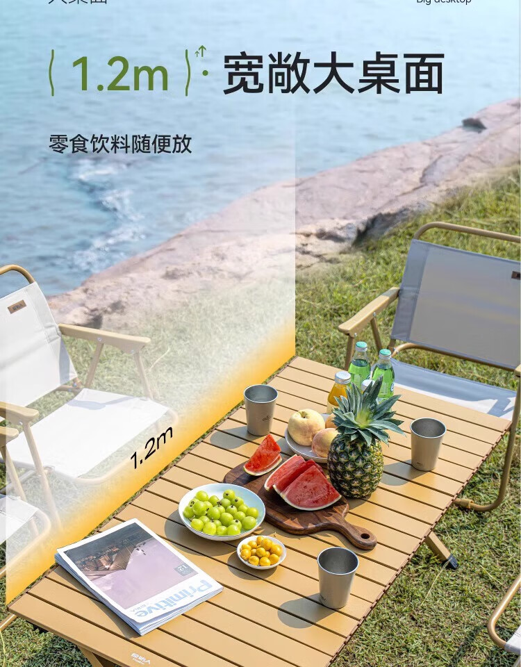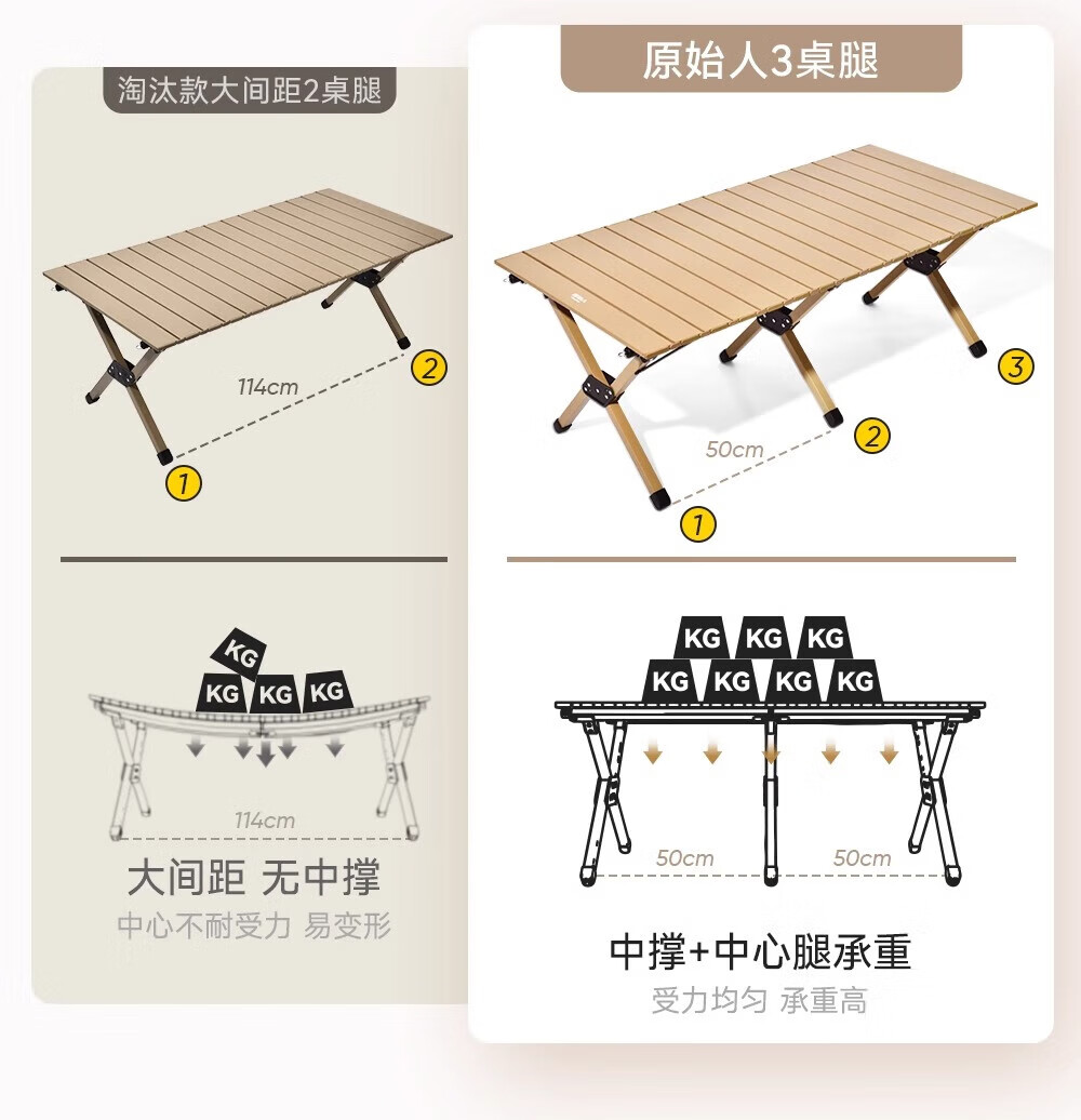 原始人户外蛋卷桌便携式折叠桌野餐桌椅露营装备用品野炊野营套装 (3腿加固)木色120CM蛋卷桌