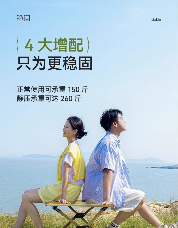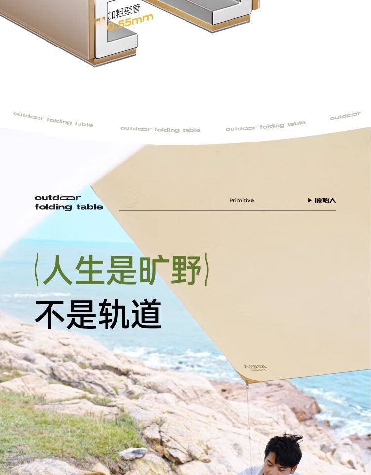 野徒者户外折叠椅露营椅子躺椅便携折叠月亮椅小凳子折叠凳钓鱼凳 原木色【150*60蛋卷桌】 出口质量加粗