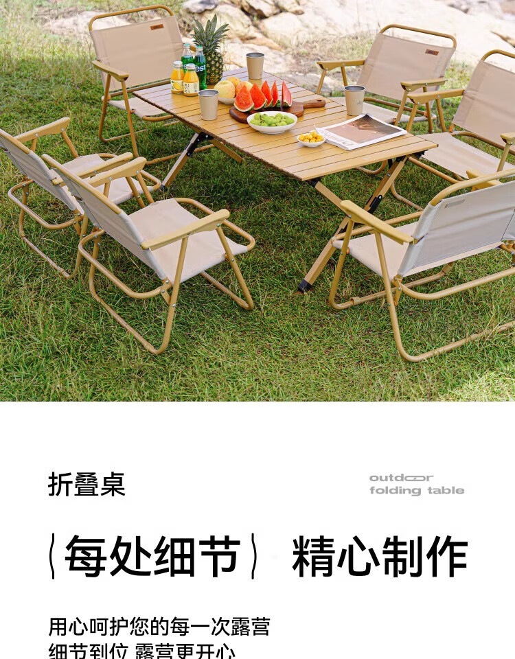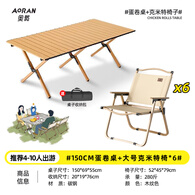 Aoran户外桌椅折叠桌子蛋卷桌便携式露营套装合金桌露营野餐夜市摆摊桌 加大号碳钢蛋卷桌+卡其大号椅*6