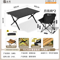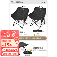 原始人露营桌椅户外折叠椅子桌子一体便携月亮椅野餐野营桌椅套装 60磨砂黑蛋卷桌+黑色*2