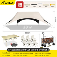 Aoran黑胶懒人天幕帐篷户外遮阳防雨防晒牛津布露营凉棚雨棚速搭便携 天幕+120cm桌椅7件套+推车