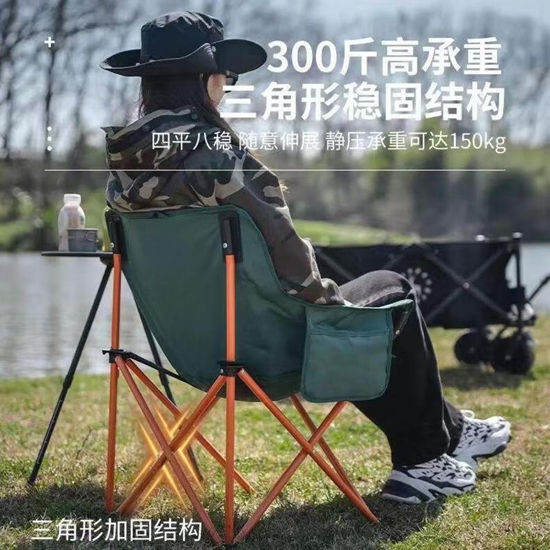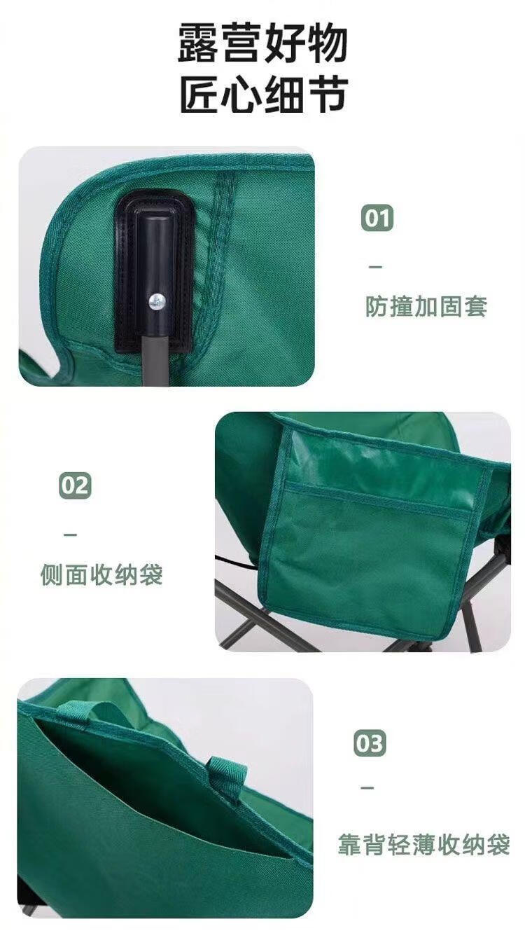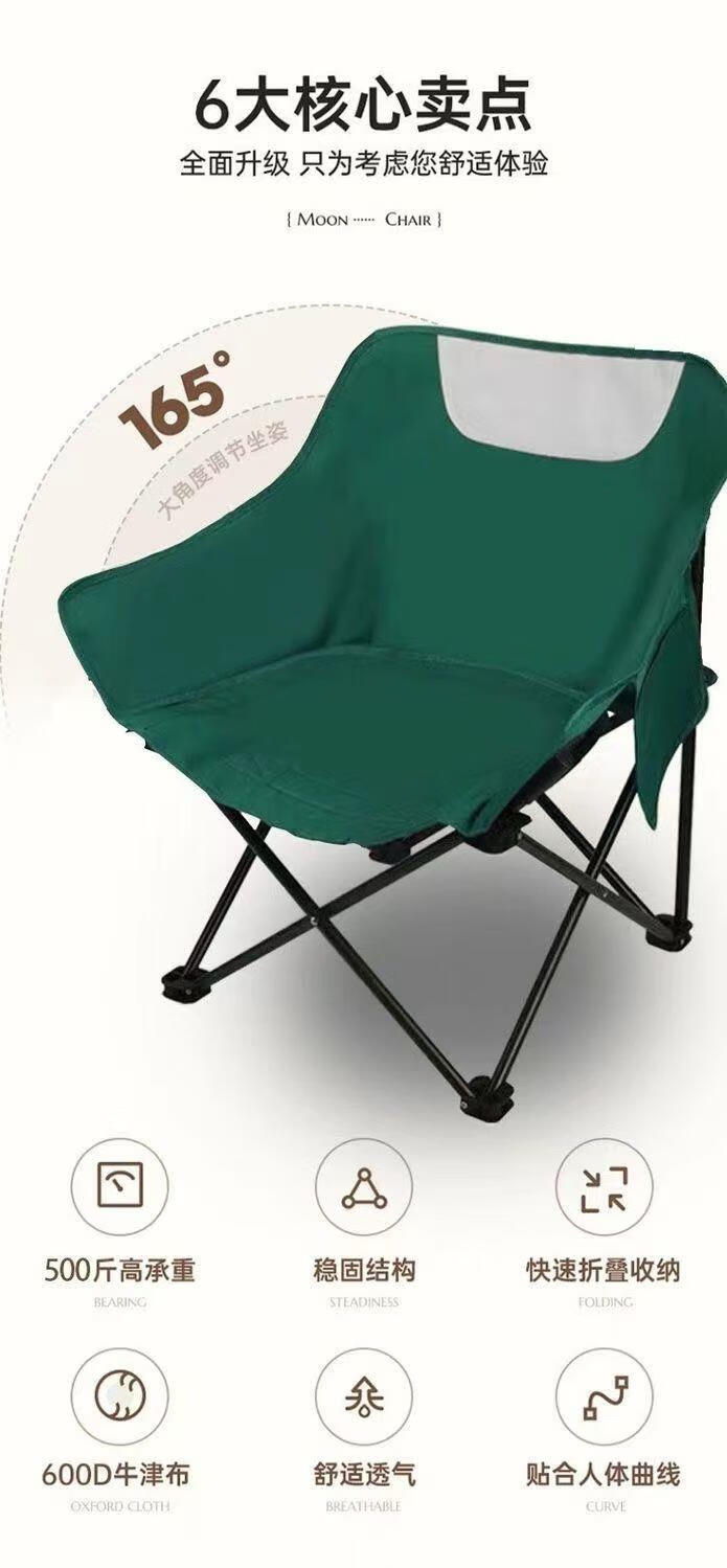 加高户外月亮椅折叠椅便携式野餐露营躺椅休闲午休钓鱼凳 坐靠躺三用【绿色】久坐不累 【600D牛津布 加粗钢架】+收纳袋