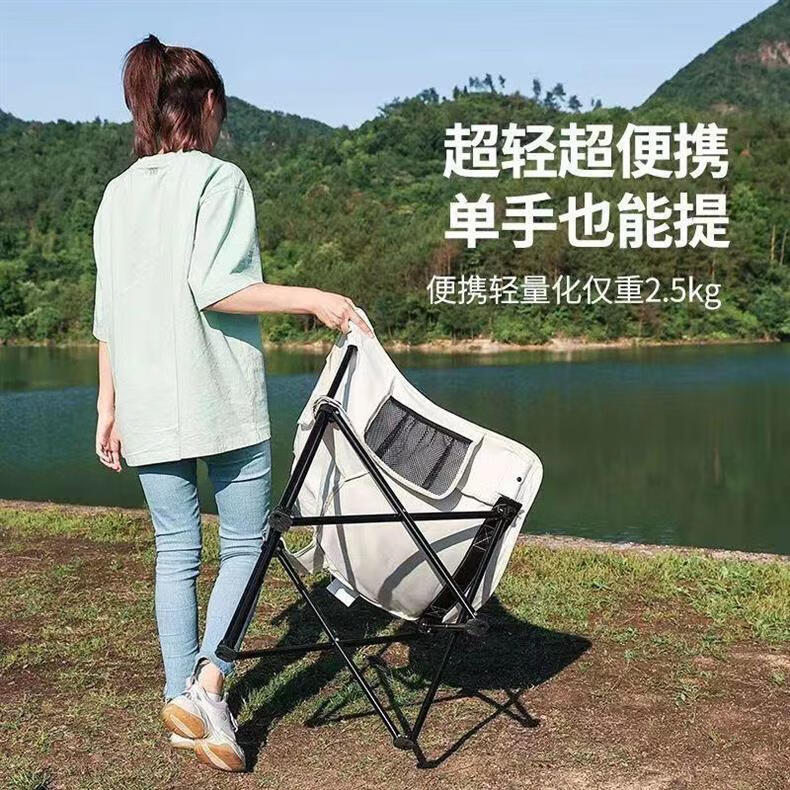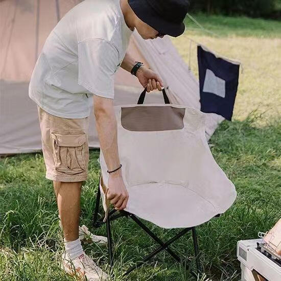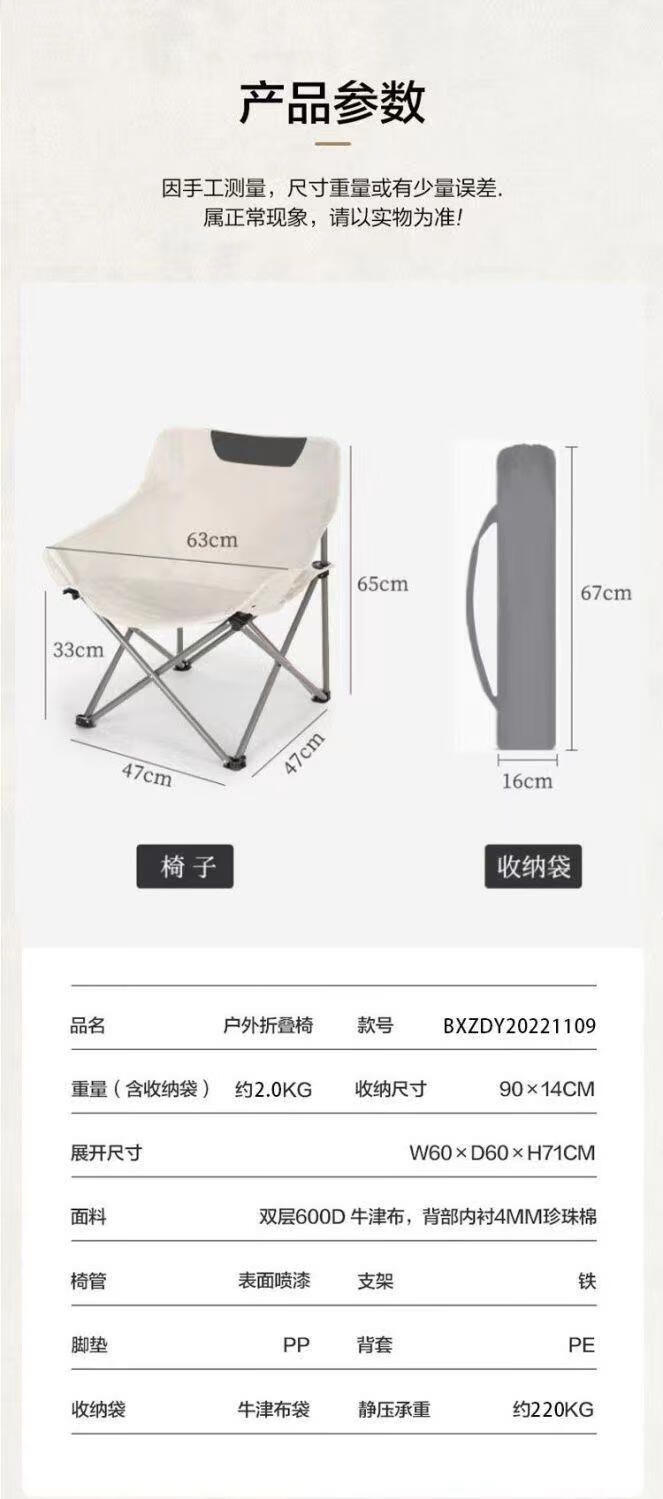 月亮椅户外折叠椅子便携式野外露营钓鱼凳子野餐美术生写生椅躺椅 加粗加厚细黄沙+送收纳袋