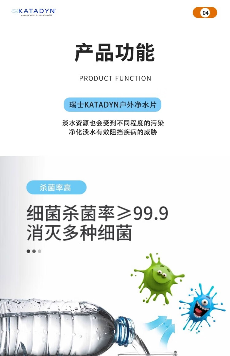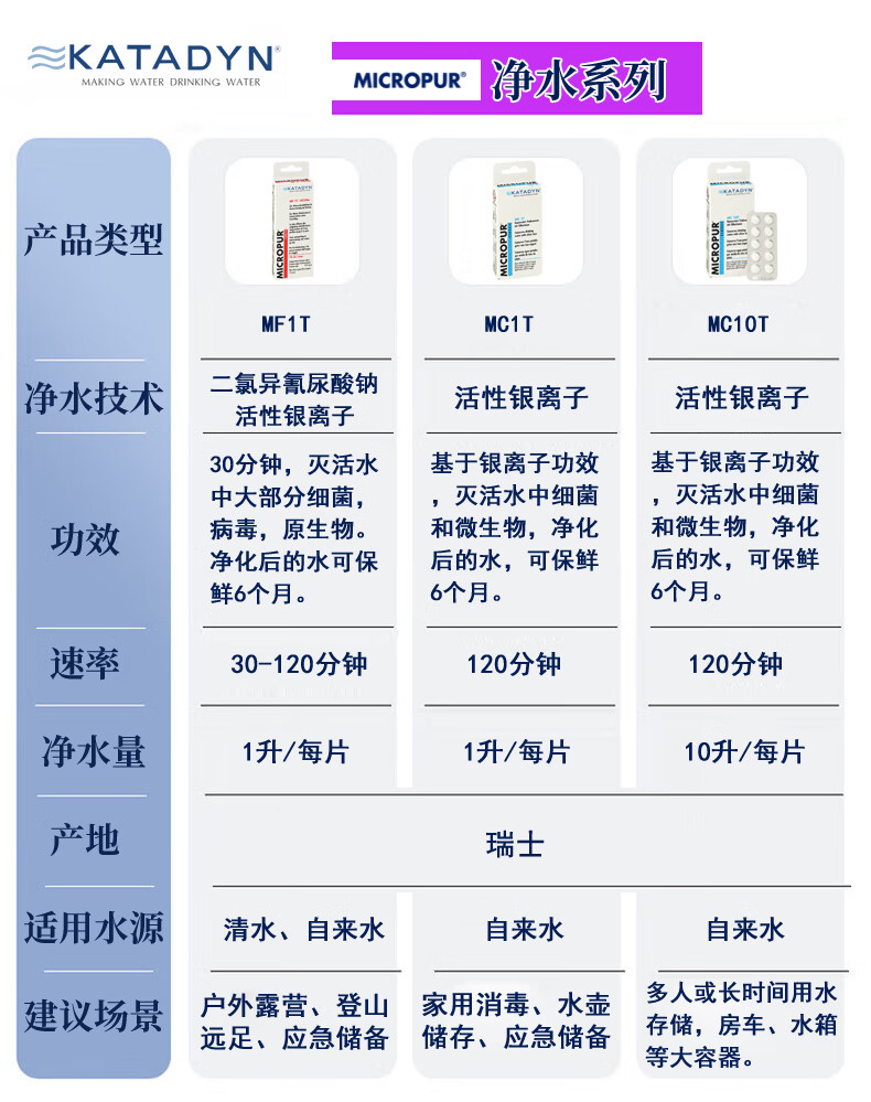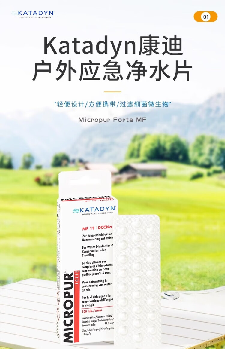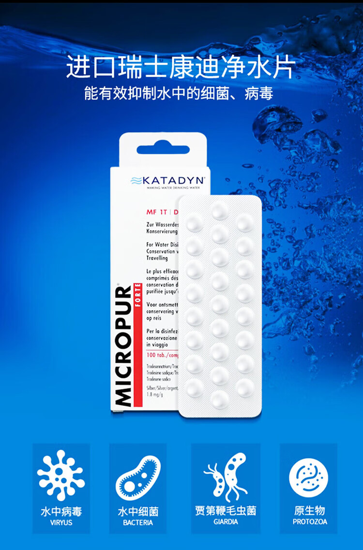 KATADYN瑞士康迪含氯户外净水片野外水质净化应急饮水 MC 1T 1板25粒 净水片(拆零无盒)
