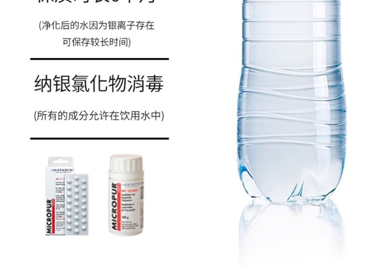 KATADYN瑞士康迪银氯净水片徒步露营自驾户外旅行应急探险救生原装进口 MC 1T 单板25片 1升/每片