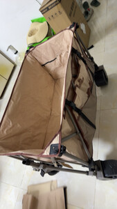 打开很方便 轮胎很宽石头地拖着都很方便 自带的桌面加上给轮胎锁上也很稳 不错不错