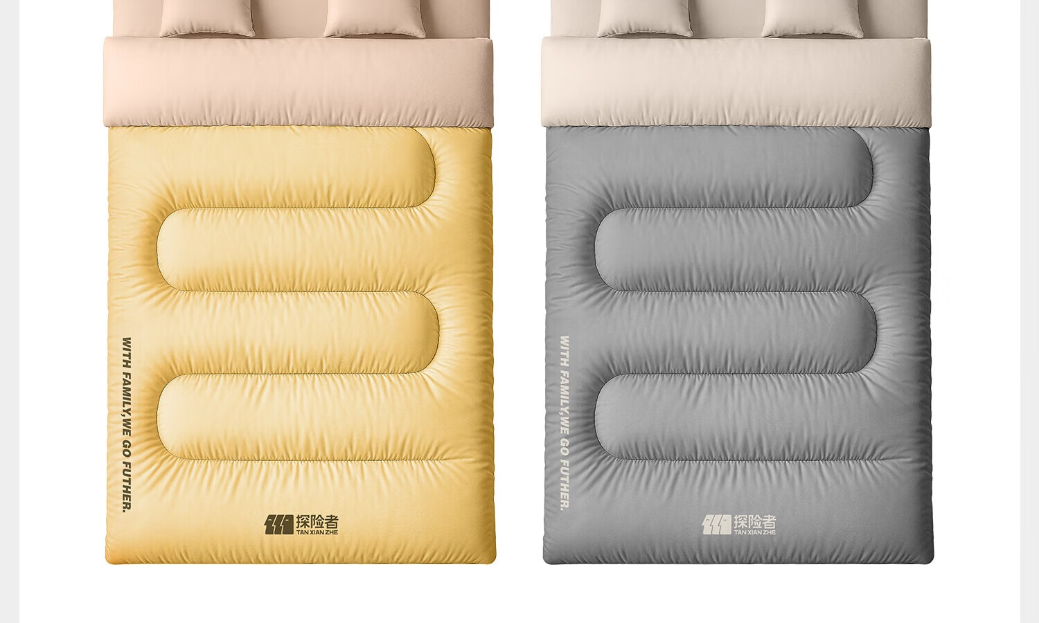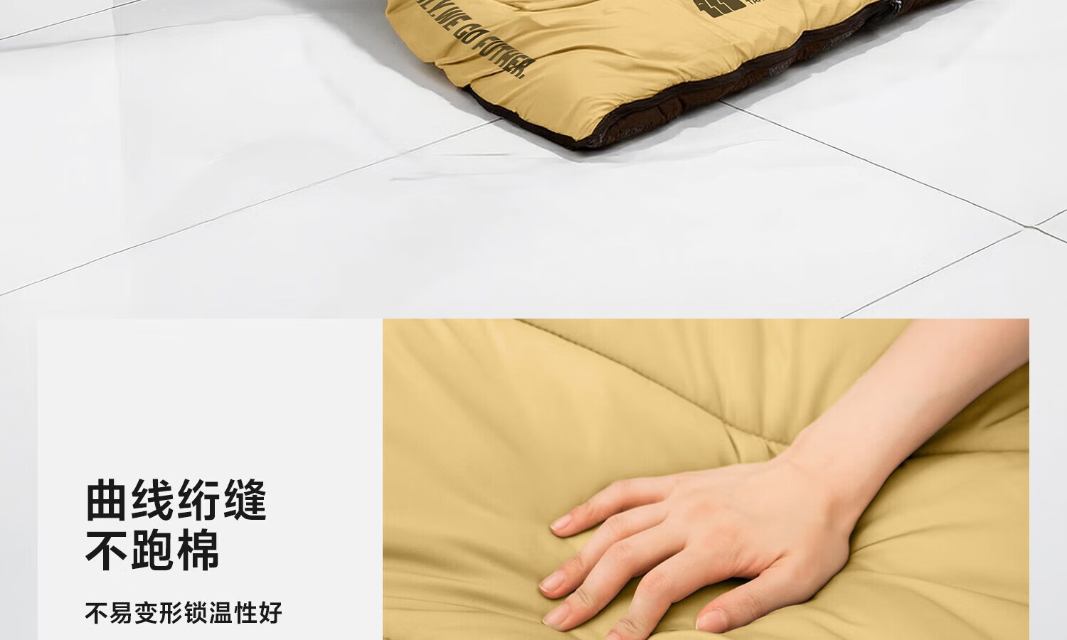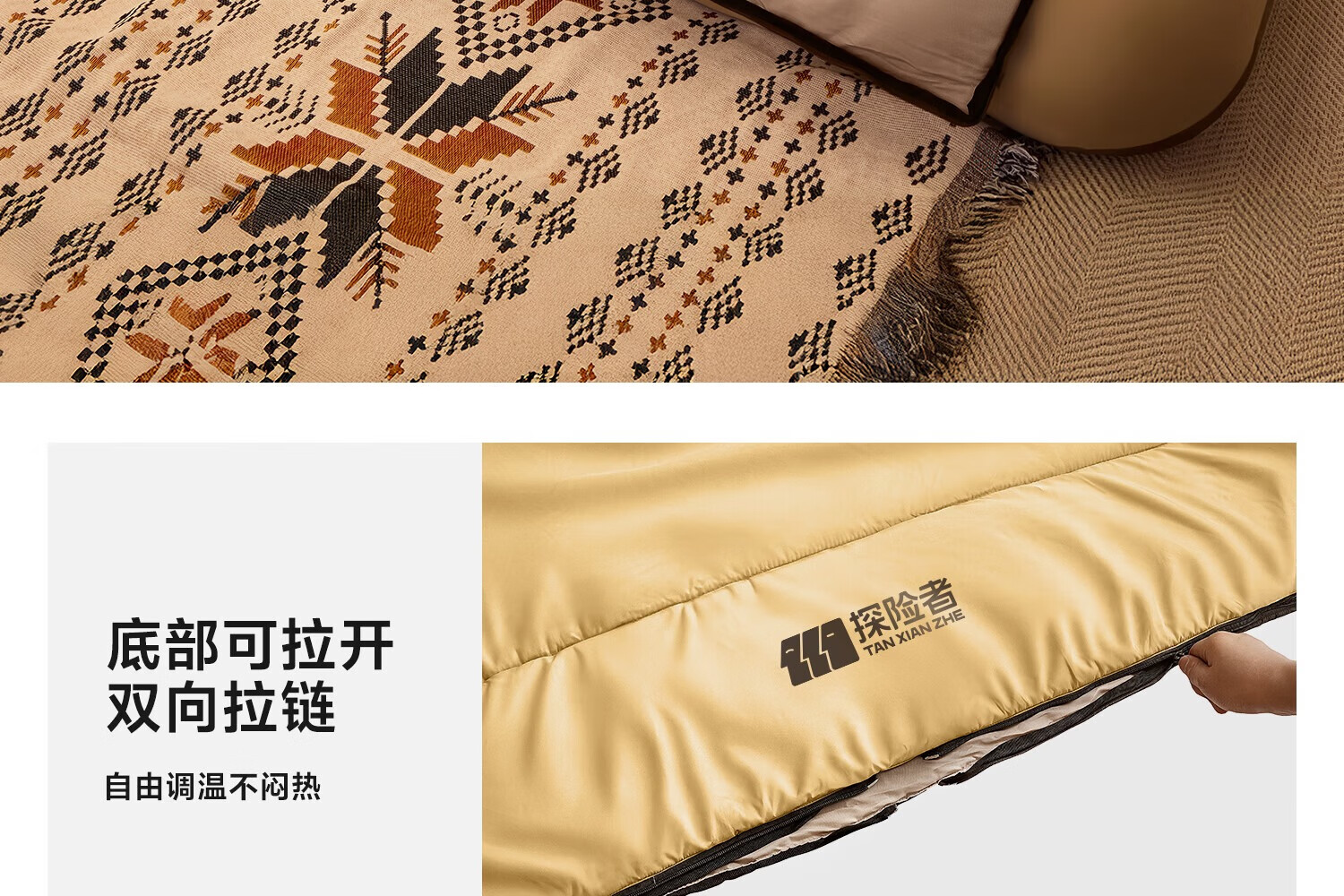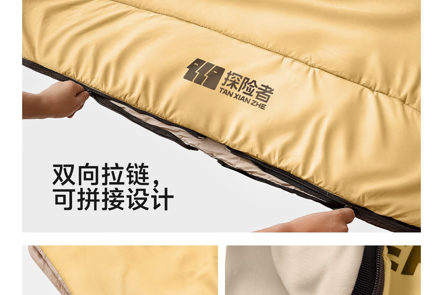 探险者(TAN XIAN ZHE)睡袋户外双人隔脏睡袋加大加宽信封式棉睡袋冬季露营便携四季通用 【4.3KG】暖米黄双人睡袋