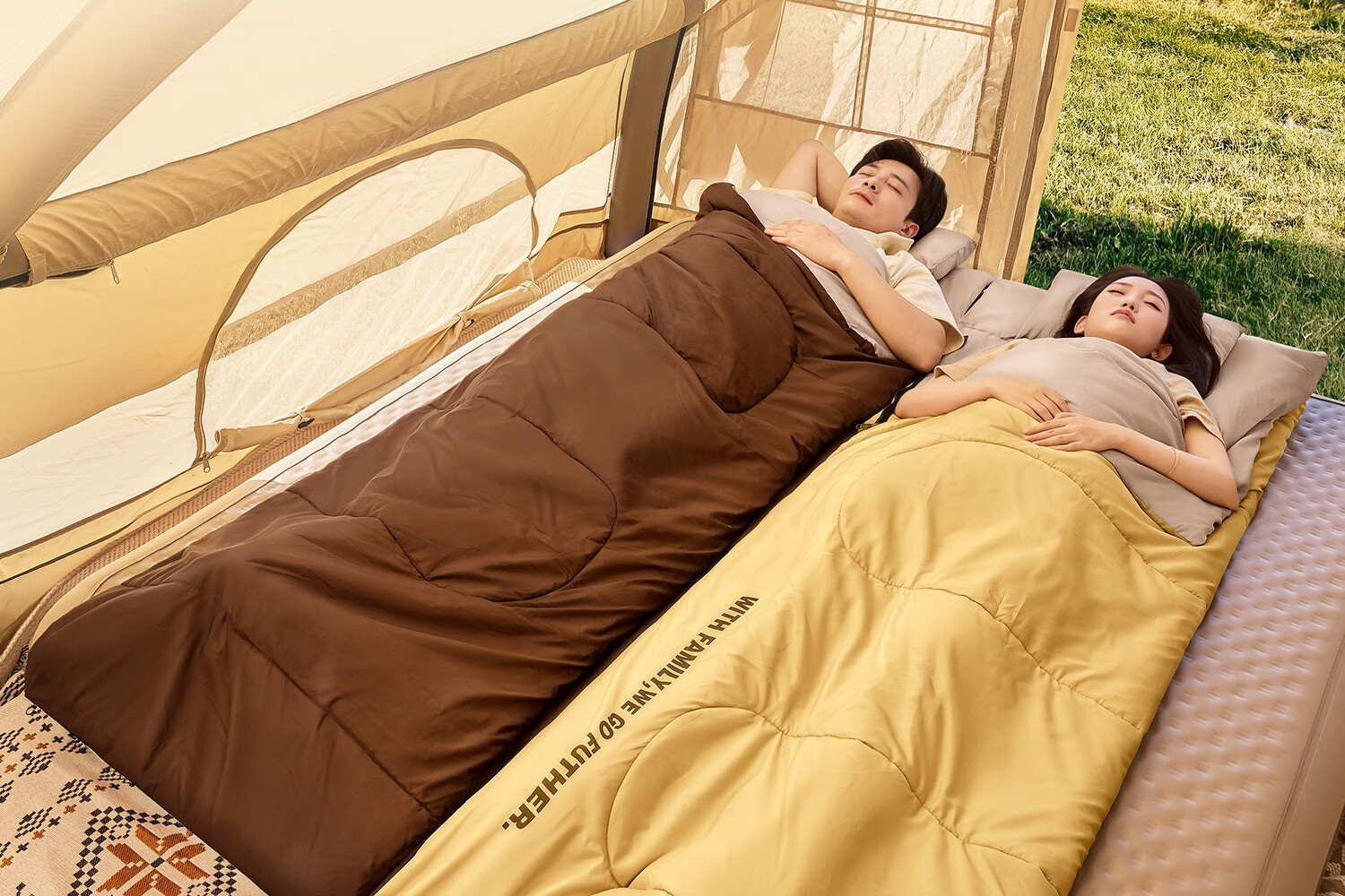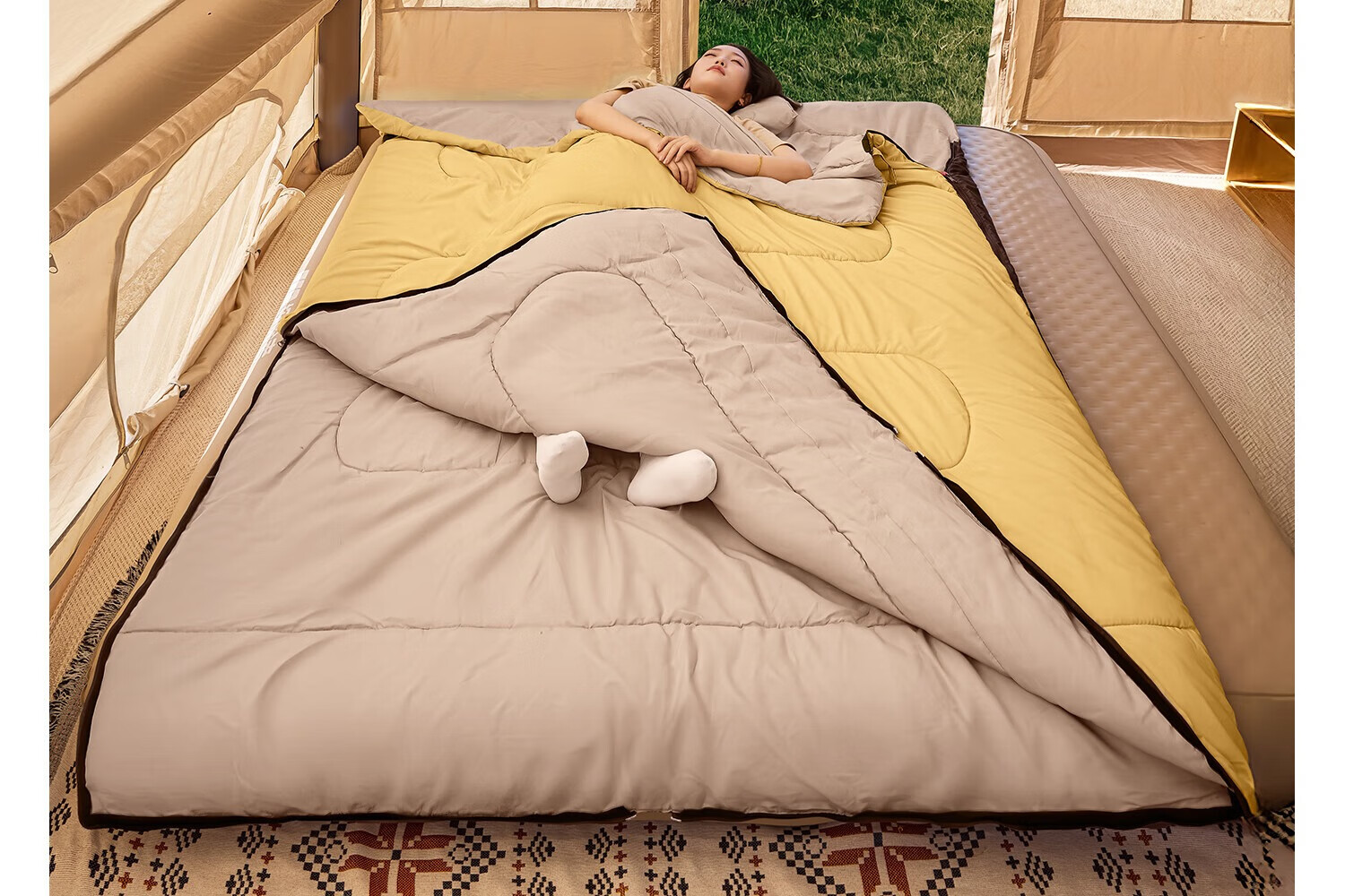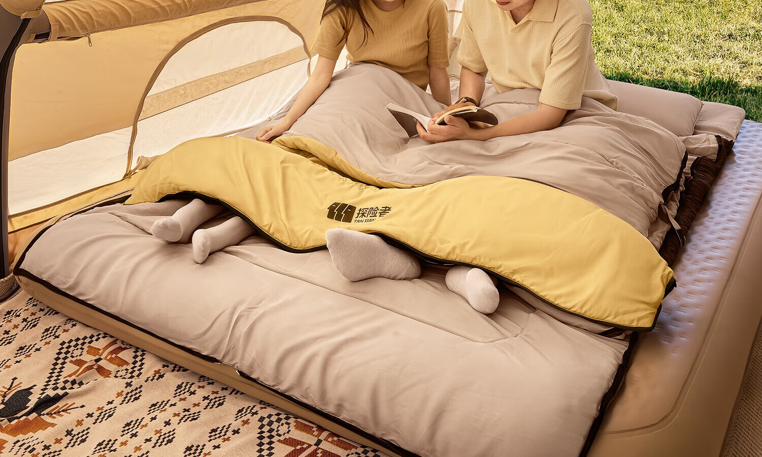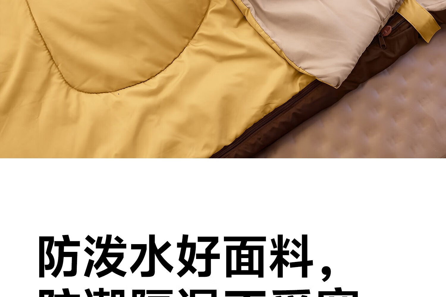 探险者(TAN XIAN ZHE)睡袋户外双人隔脏睡袋加大加宽信封式棉睡袋冬季露营便携四季通用 【4.3KG】暖米黄双人睡袋