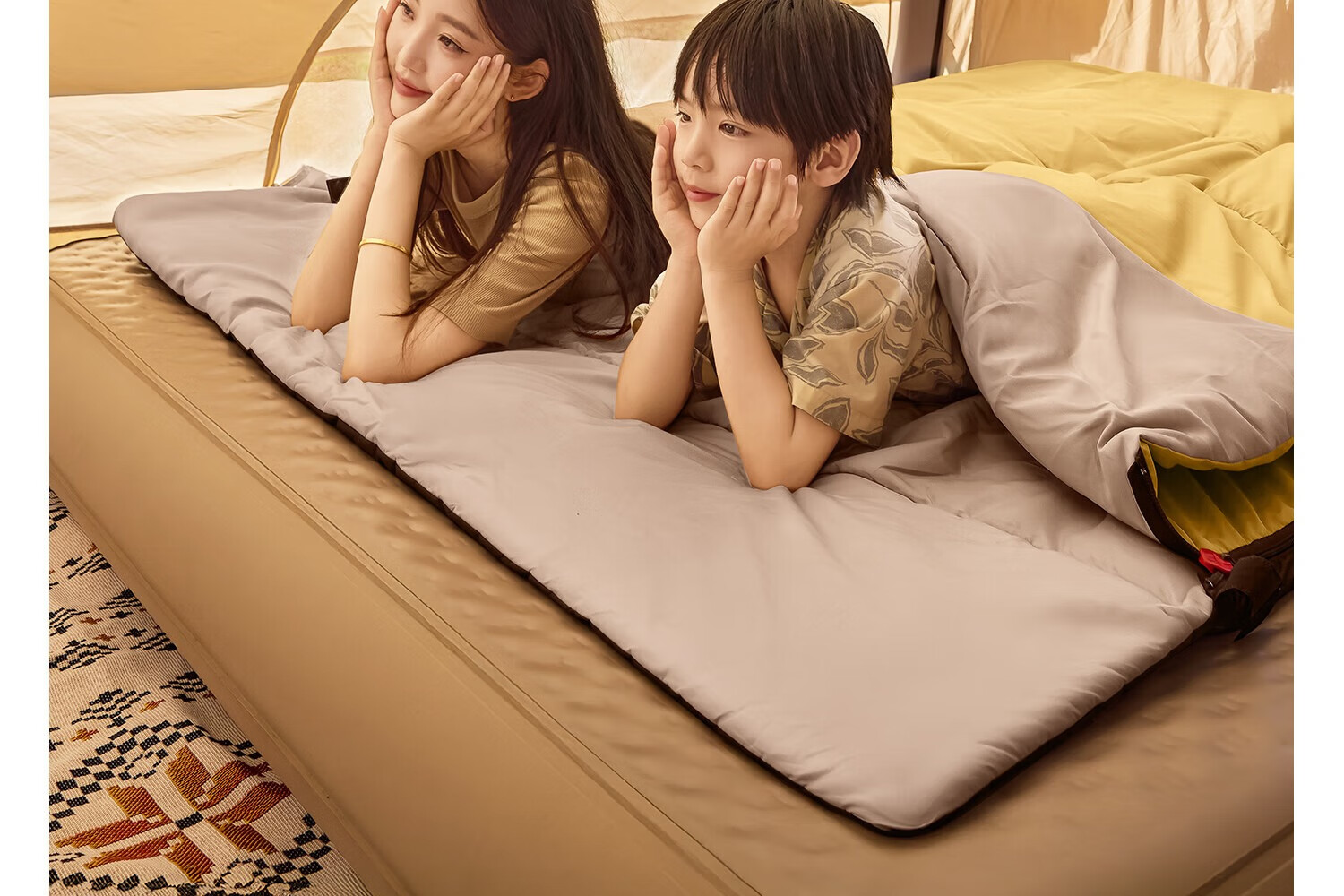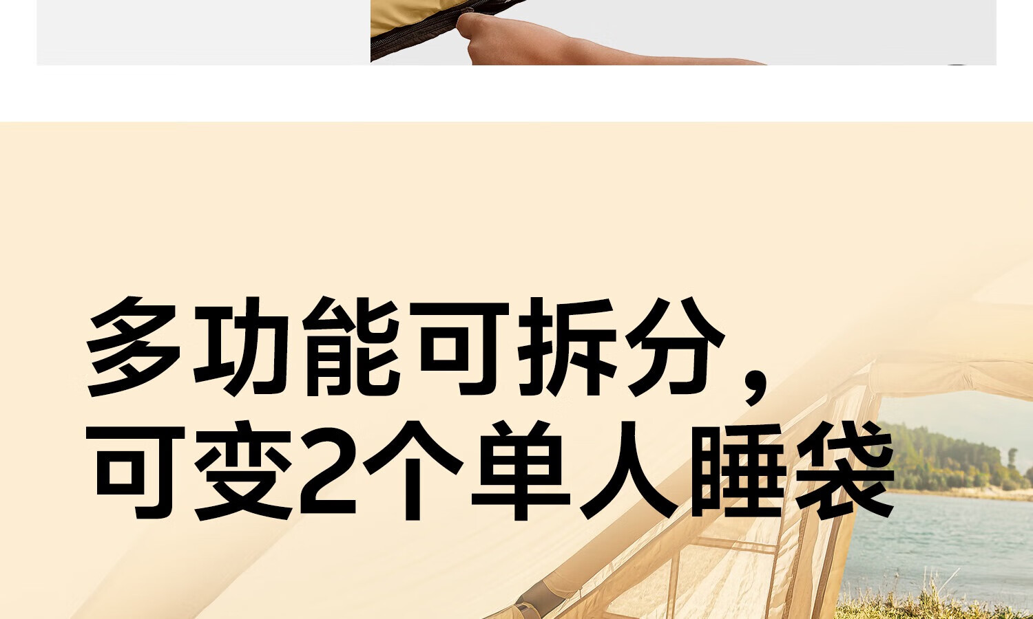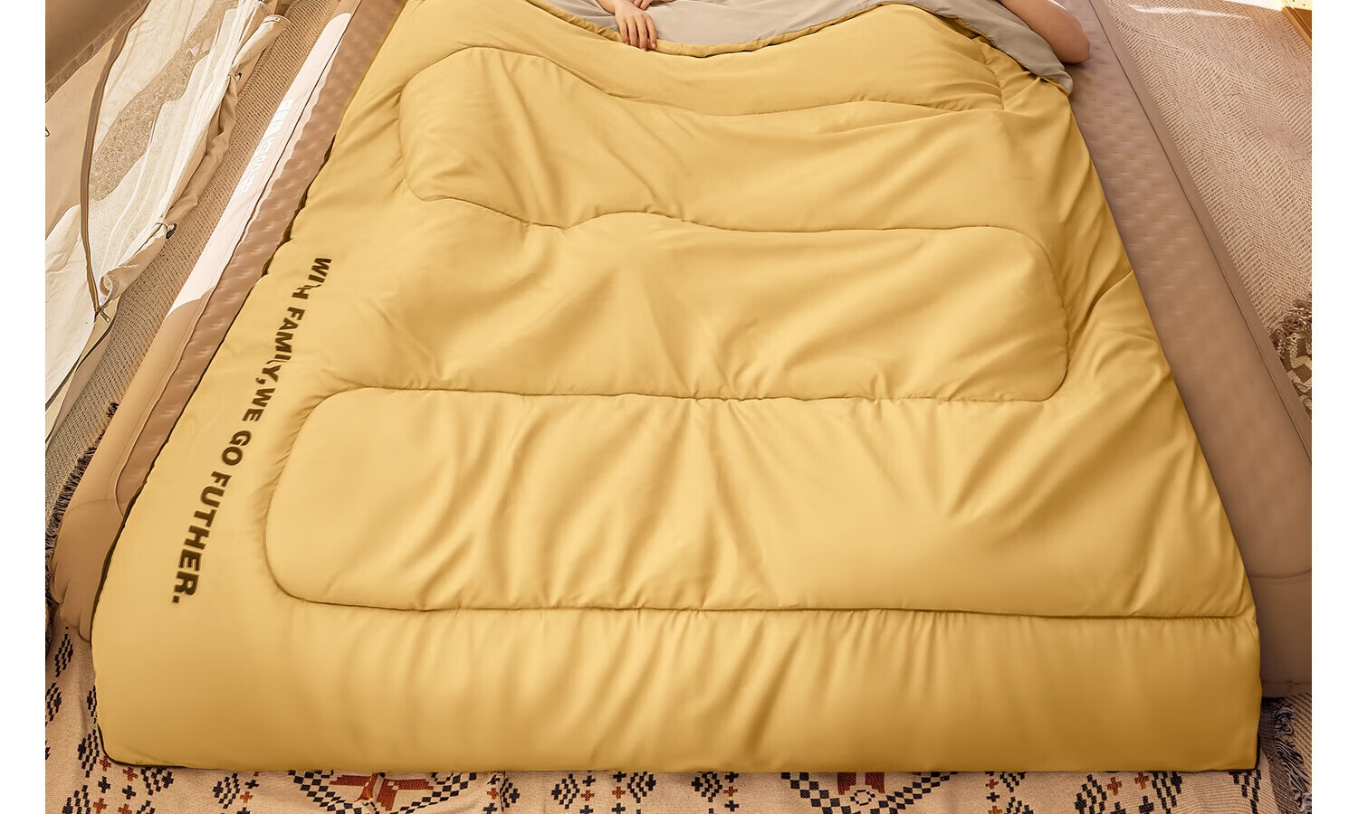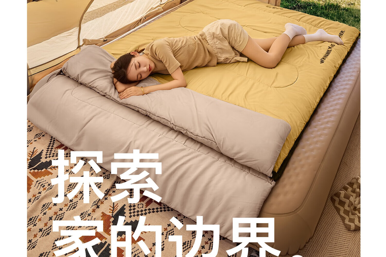 探险者(TAN XIAN ZHE)睡袋户外双人隔脏睡袋加大加宽信封式棉睡袋冬季露营便携四季通用 【4.3KG】暖米黄双人睡袋