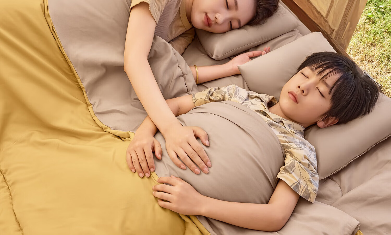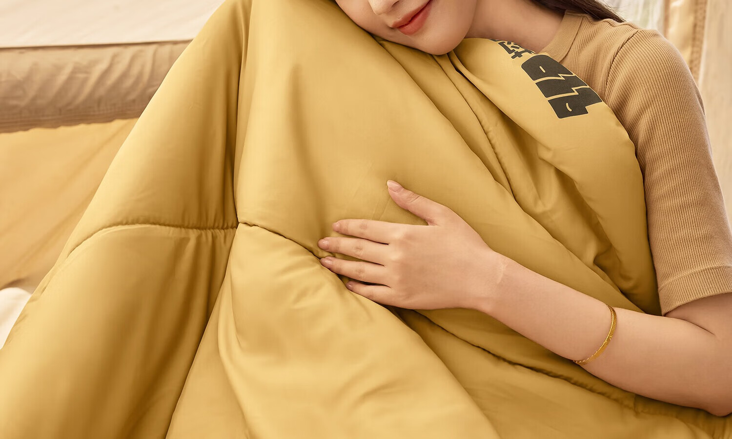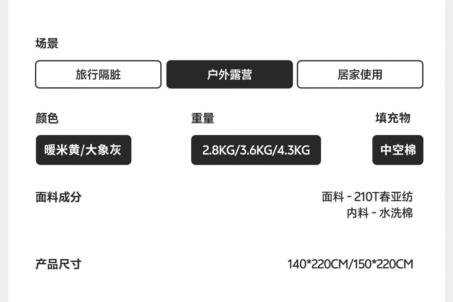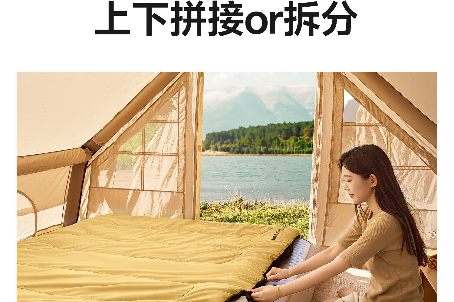 探险者(TAN XIAN ZHE)睡袋户外双人隔脏睡袋加大加宽信封式棉睡袋冬季露营便携四季通用 【4.3KG】暖米黄双人睡袋