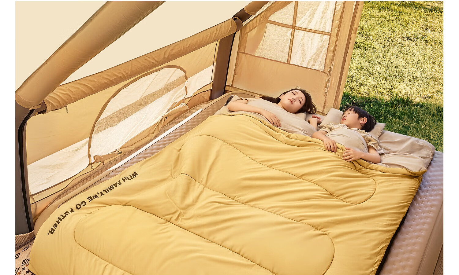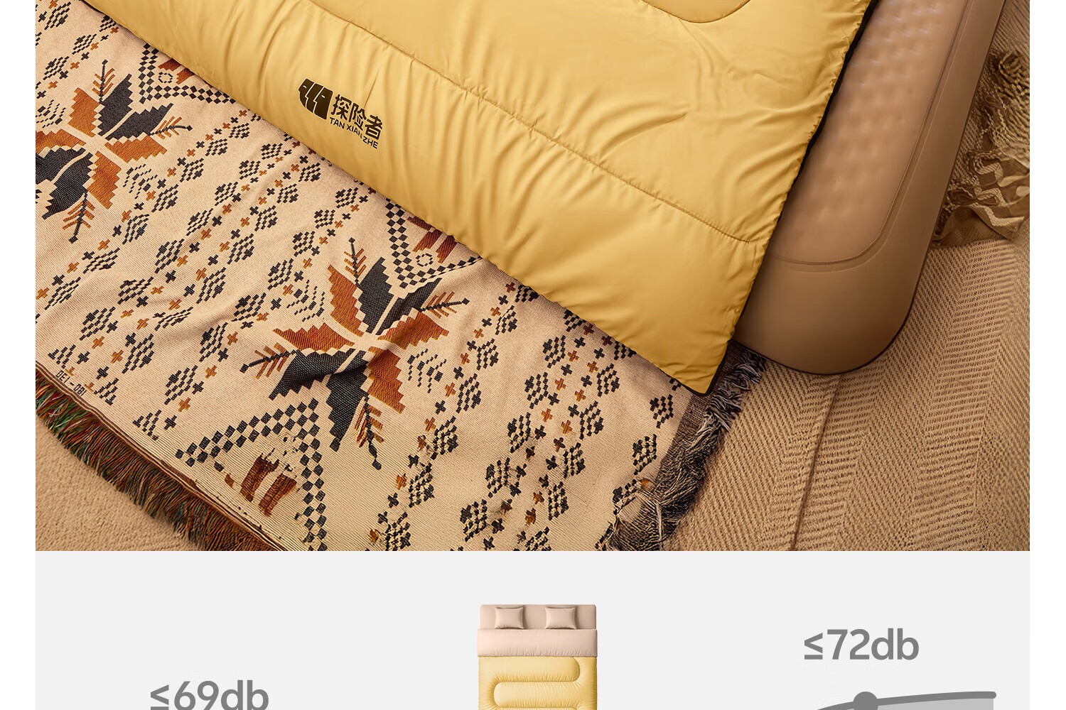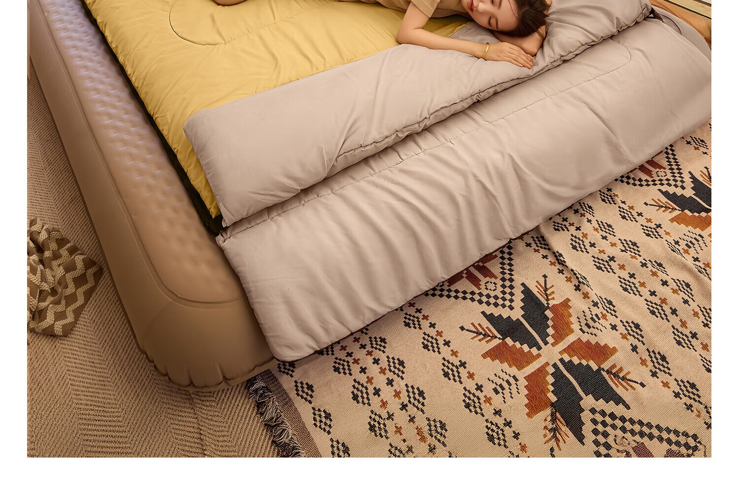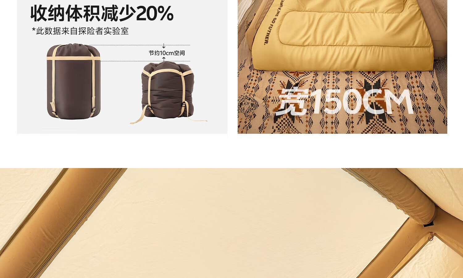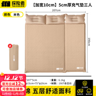 探险者充气床垫户外自动充气垫床家用便携露营打地铺午休气垫加厚防潮垫 暖黄-5CM三人充气床垫(加宽10CM)