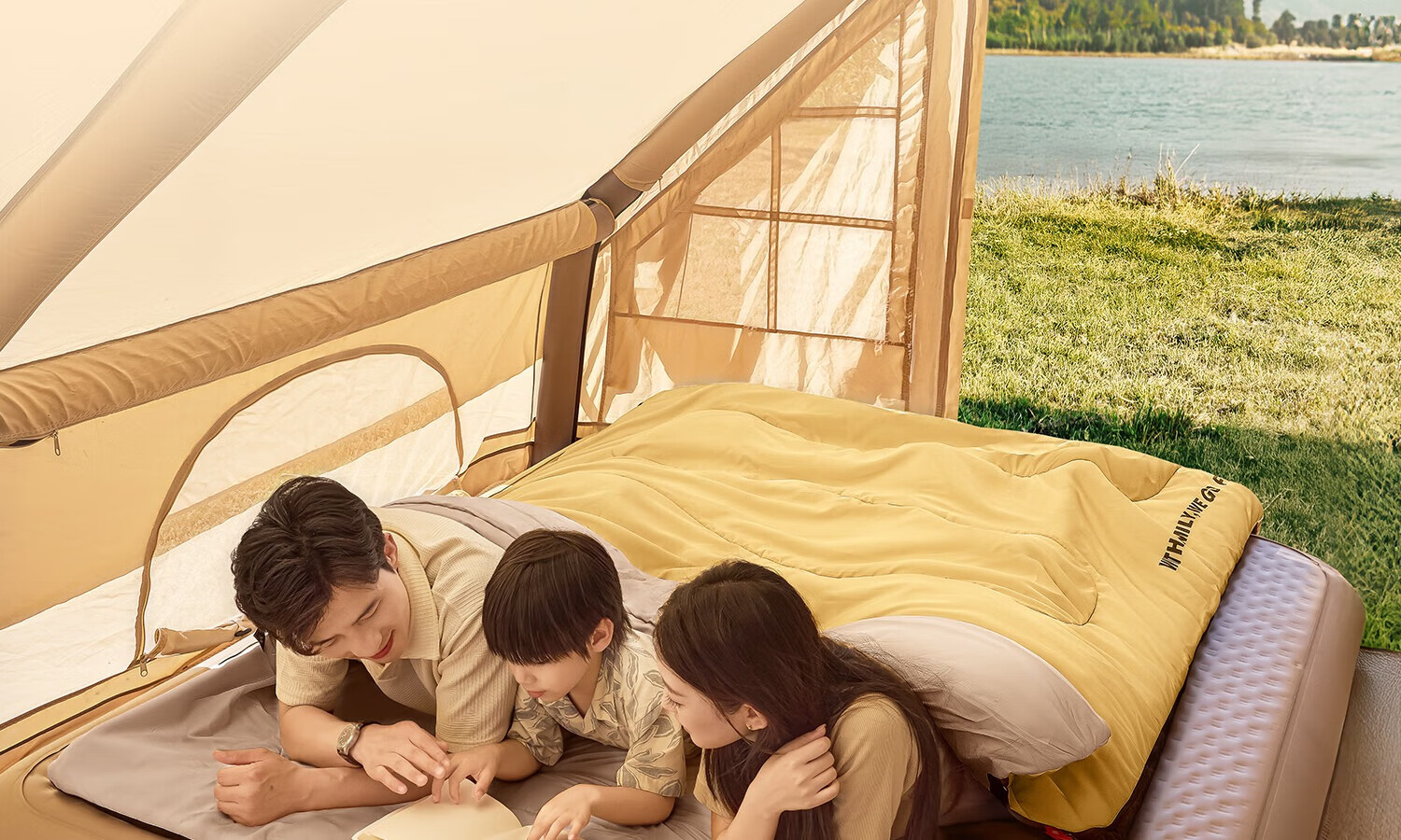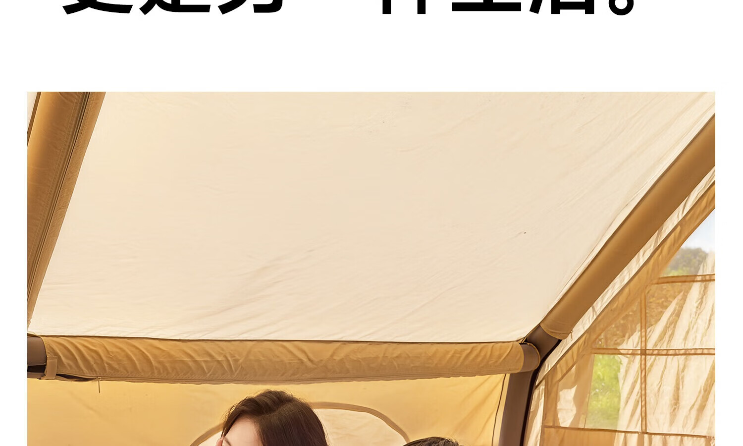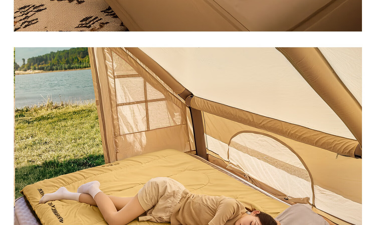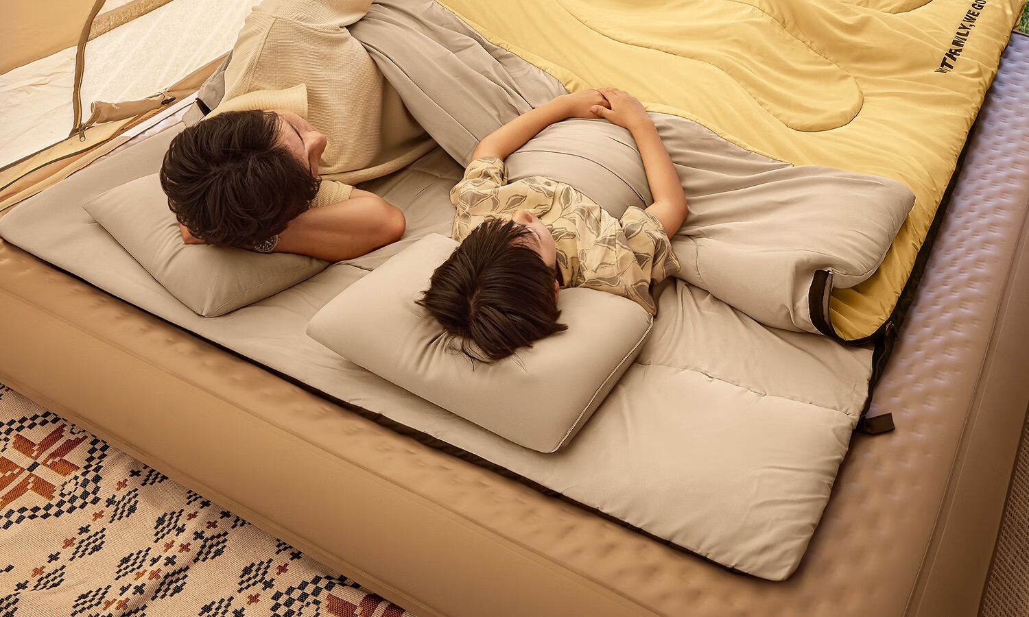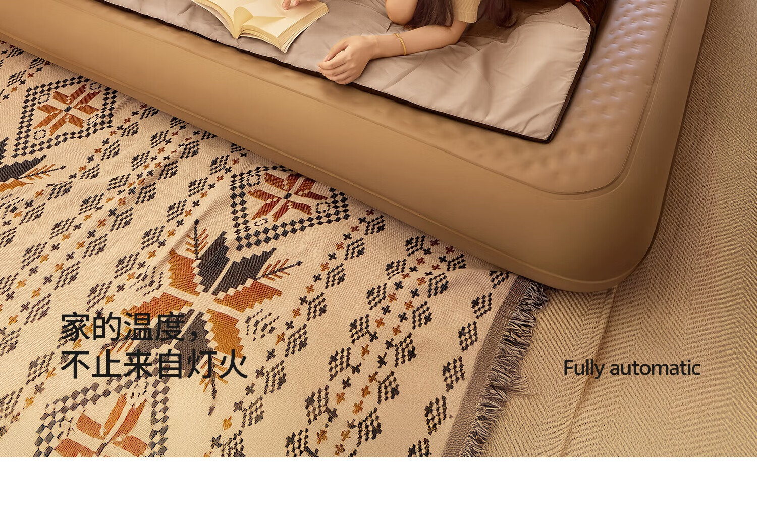 探险者充气床垫户外自动充气垫床家用便携露营打地铺午休气垫加厚防潮垫 暖黄-5CM三人充气床垫(加宽10CM)