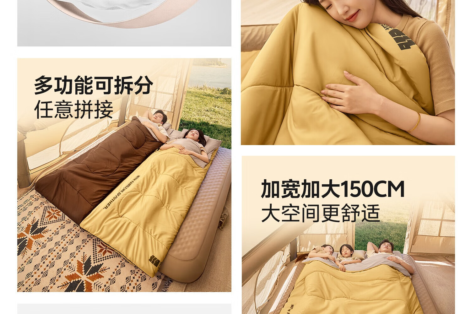 北极狼双人睡袋成人冬季保暖加厚加宽便携式睡袋户外露营防寒可拆分睡袋 双人加宽睡袋【4300g/秋意黄】-5~6℃