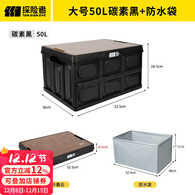 探险者露营收纳箱户外折叠储物箱便携大容量后备箱整理箱野营装备露营箱 碳素黑-50L折叠收纳箱【防水袋】
