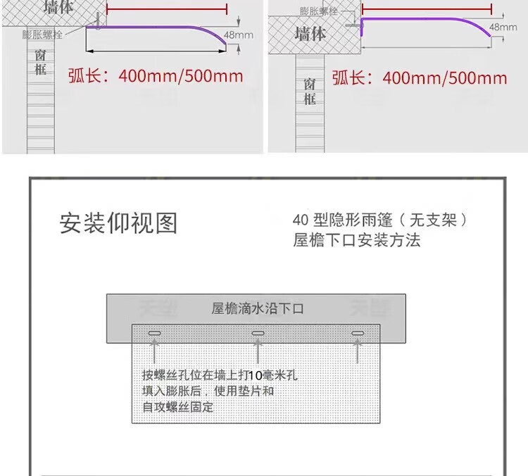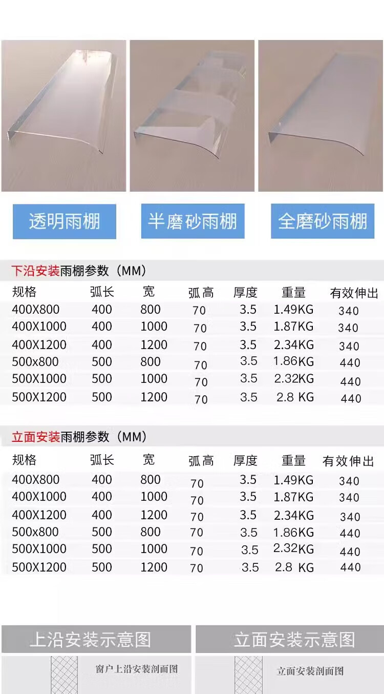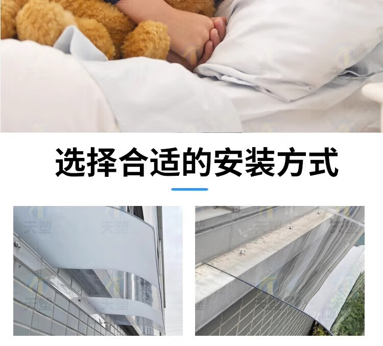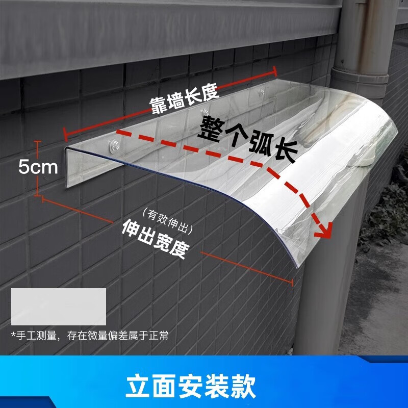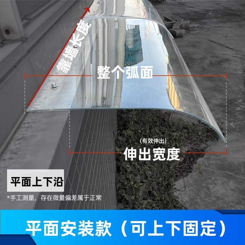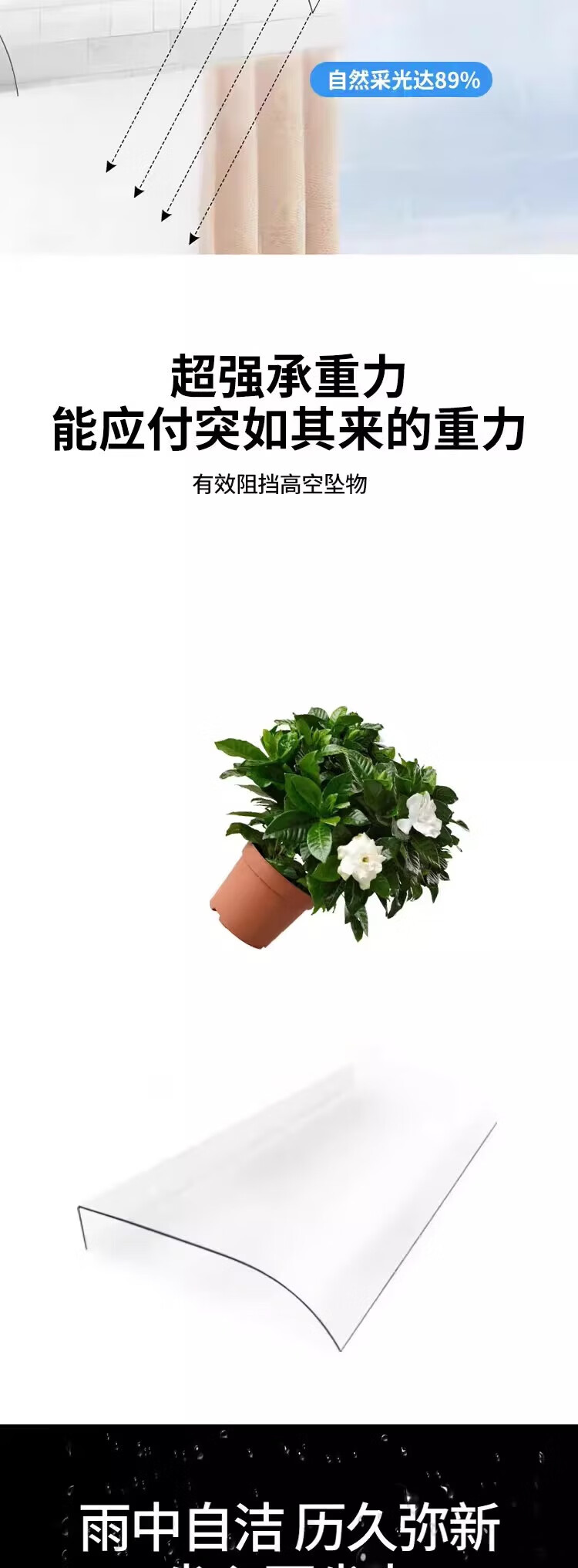 溥畔隐形雨棚户外防雨透明遮雨窗户阳台大门无支架无声雨搭 40*120CM透明 上下沿平面