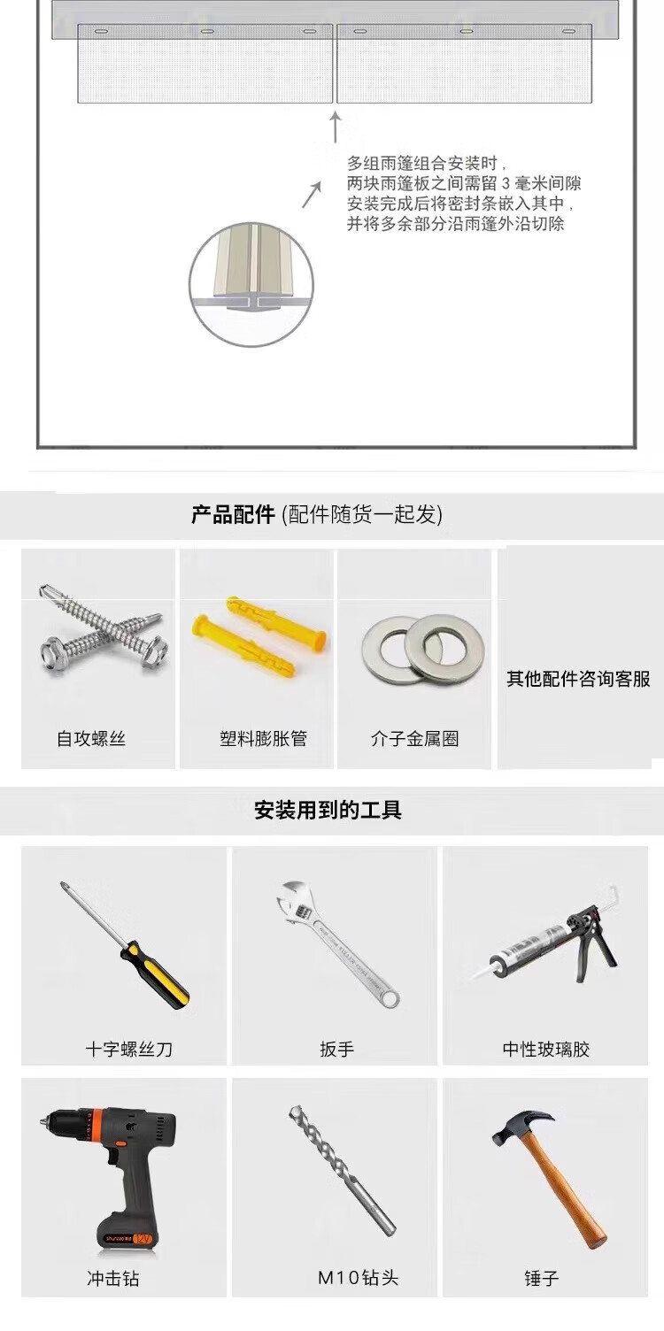 铝合金雨棚户外遮阳挡雨别墅庭院阳台农村院子门头屋檐家用阳光棚 横梁款(每平方材料费)