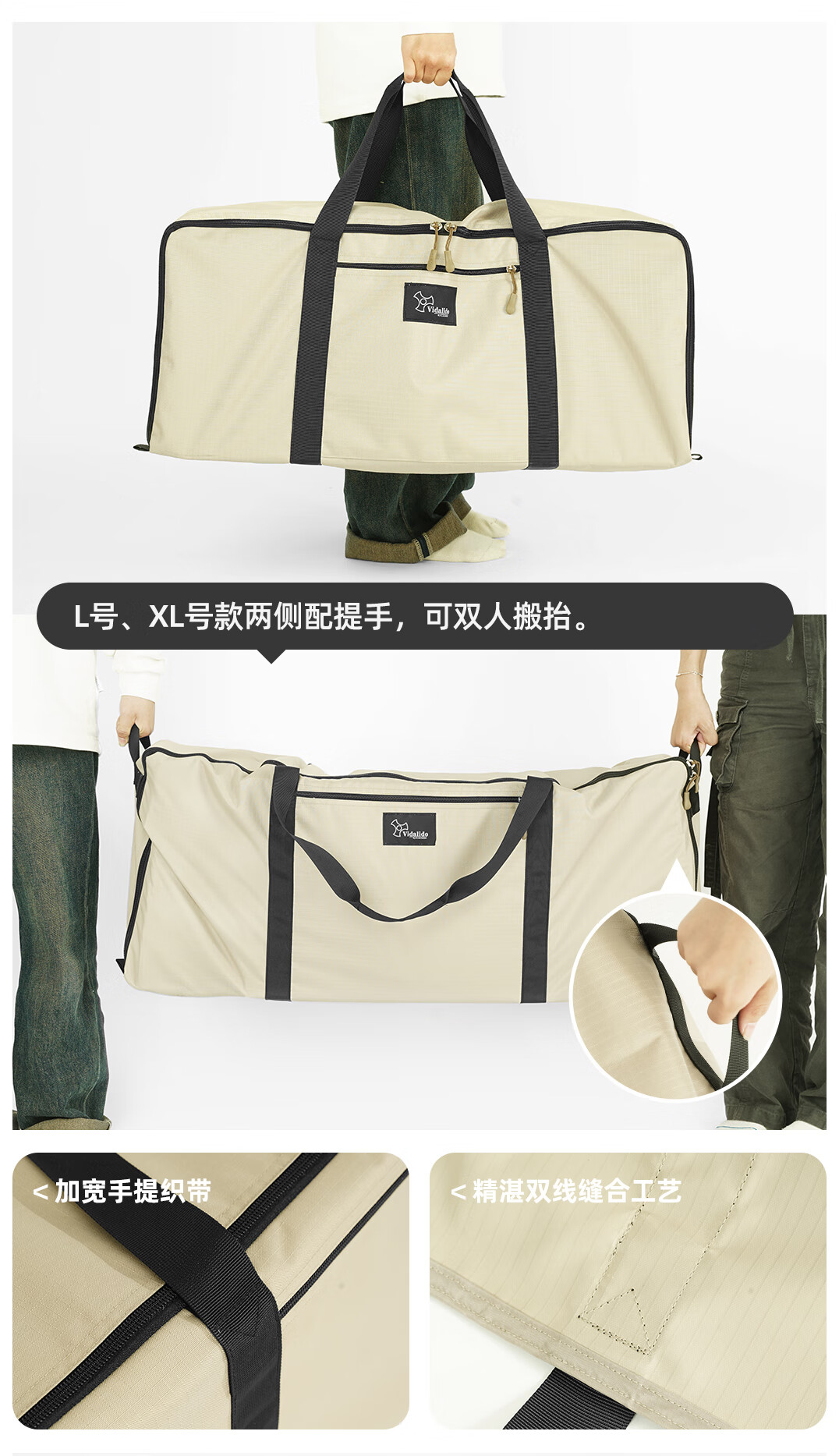 大小刚合适,能放进一套折叠座椅, 然后还有空余空间,再装点其他的物品, 这样就一次性可以全部拿上了, 不用来回跑几趟。 旁边还能手提,很方便哈。