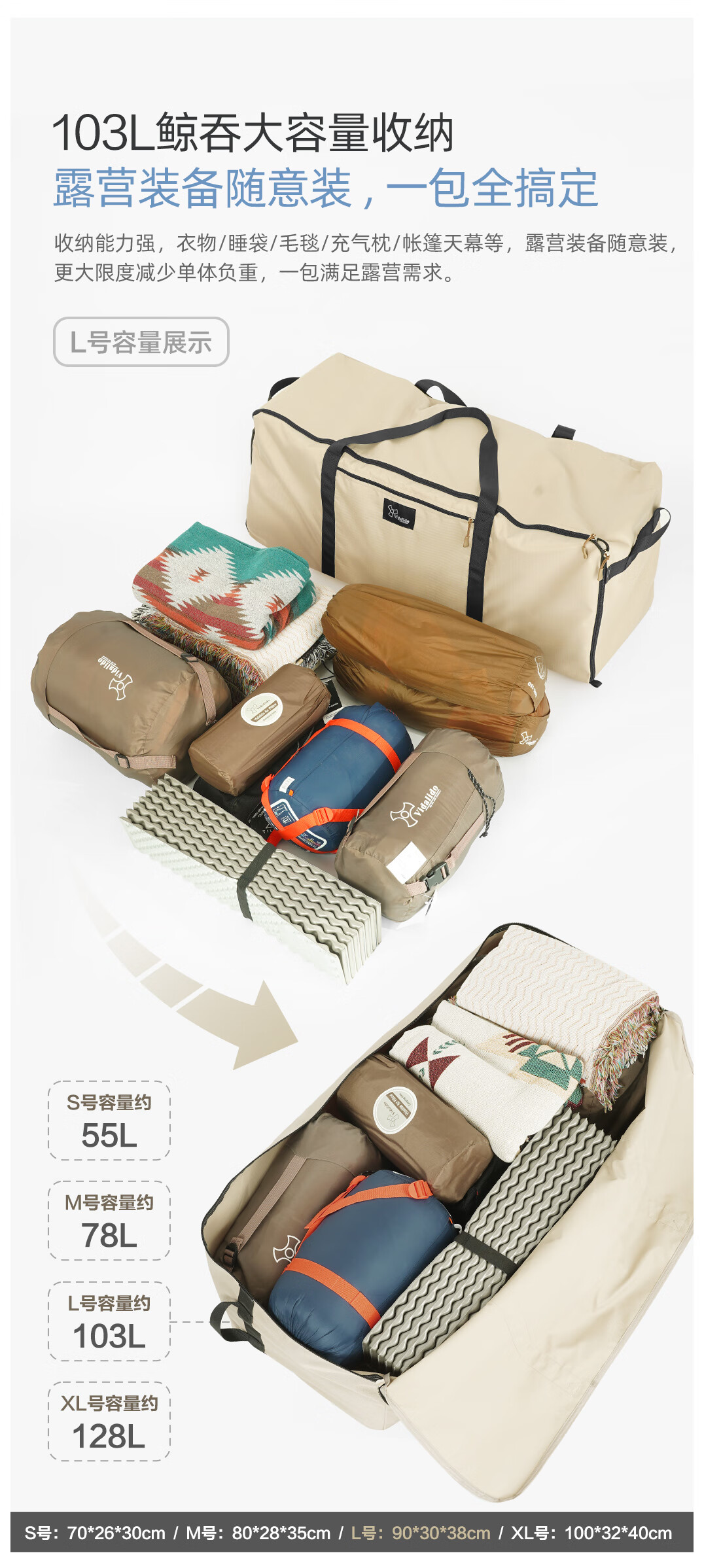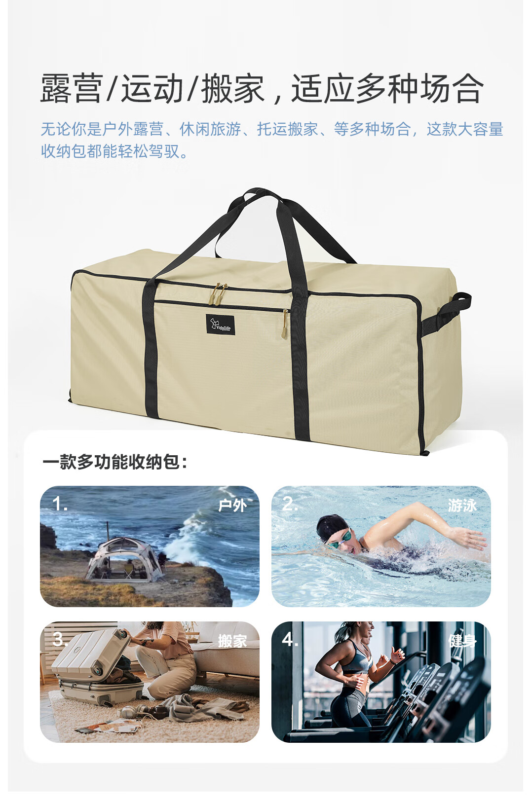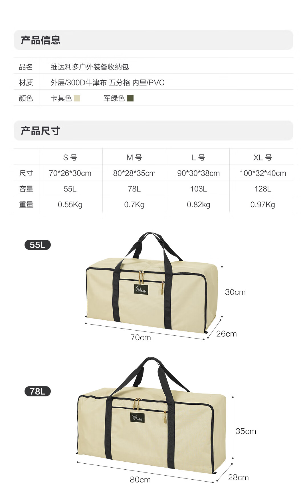 vidalido维达利多户外露营超大号收纳包牛津布防水大容量行李打包袋旅行袋 M号80*28*35cm78L-军绿色