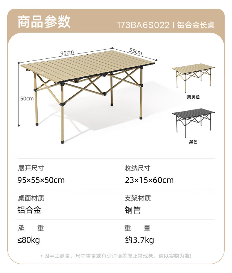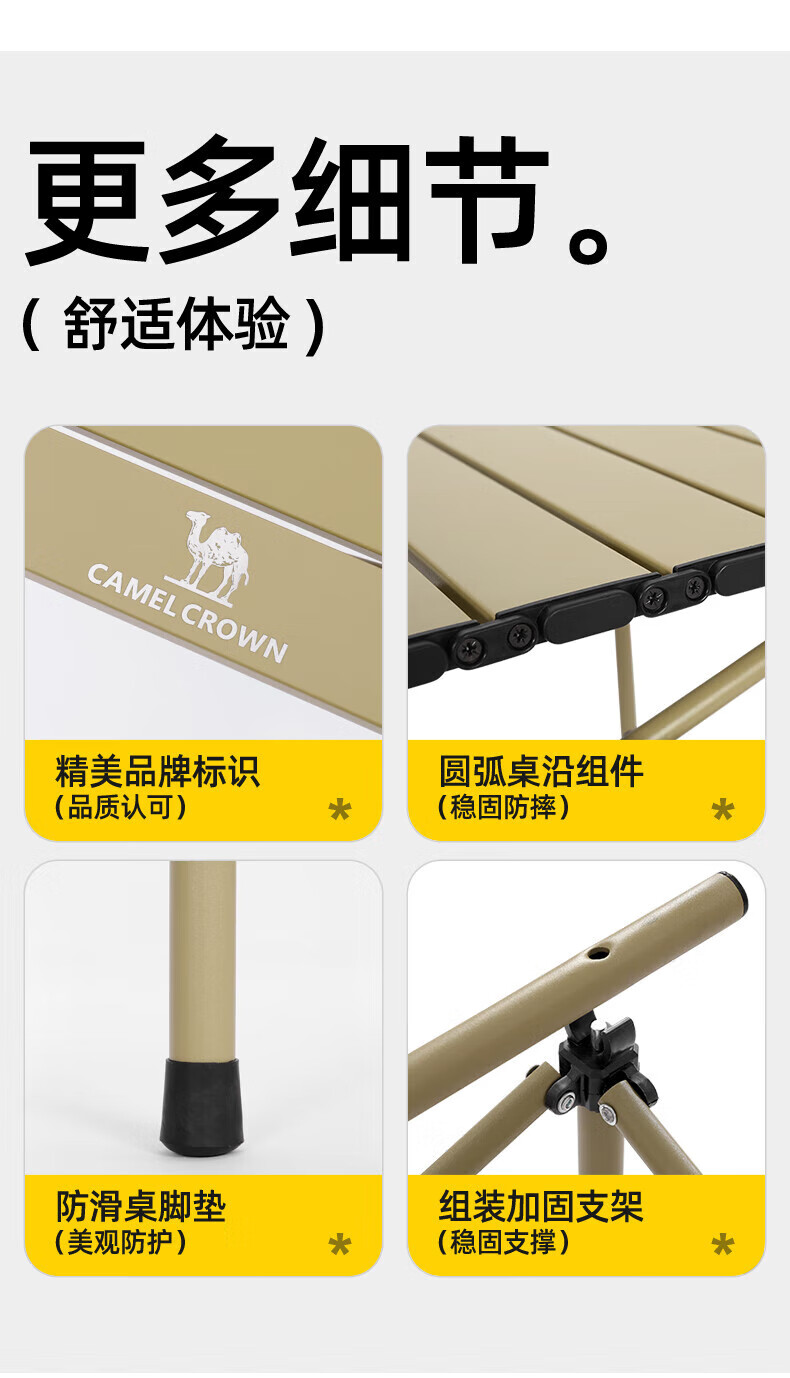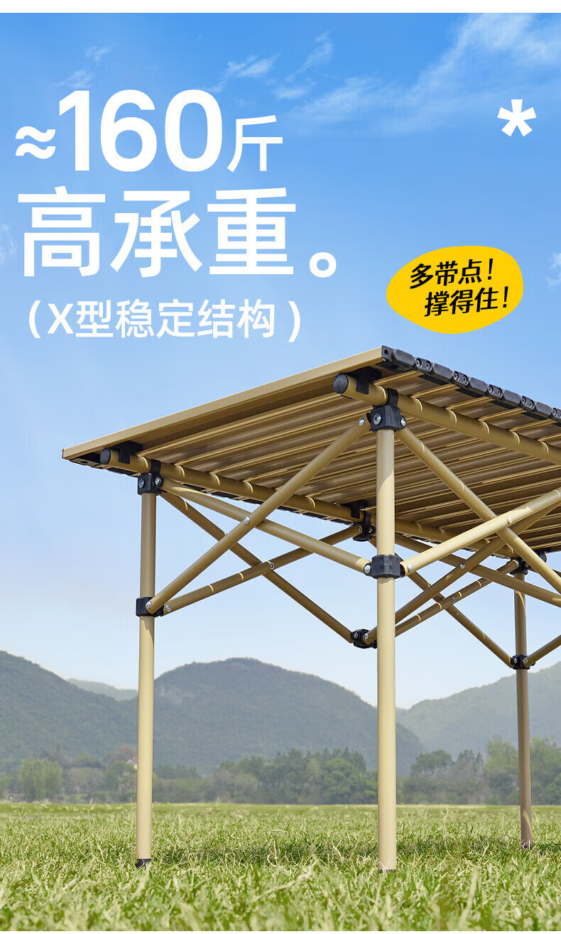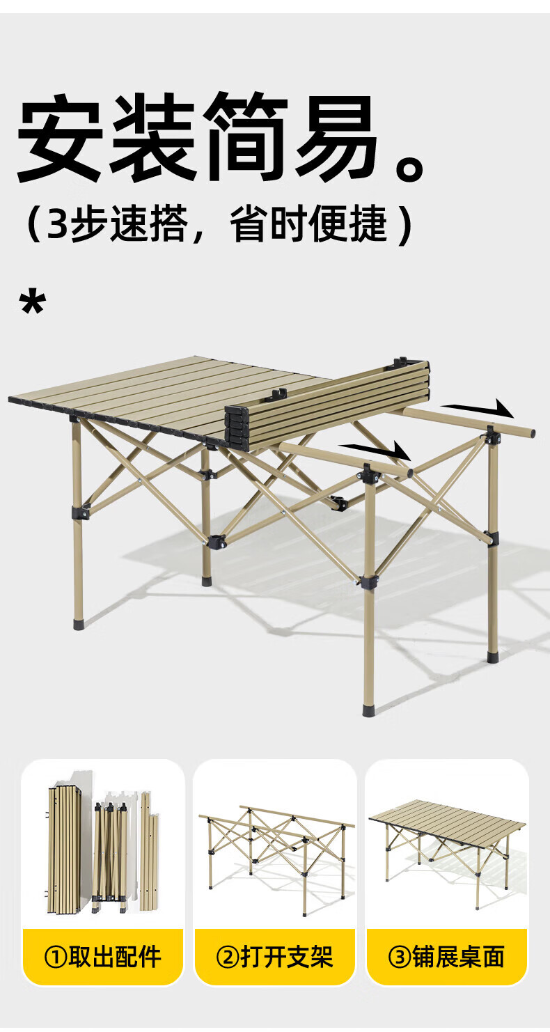 CAMEL户外折叠桌铝合金野餐桌椅桌子露营桌装备蛋卷桌套装 【可爱熊猫铝合金】95CM鹅黄色