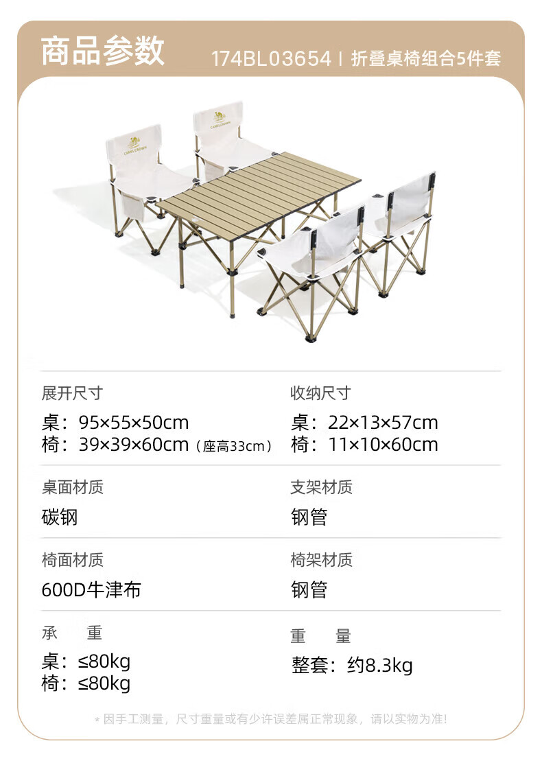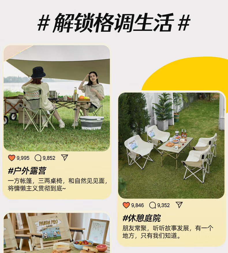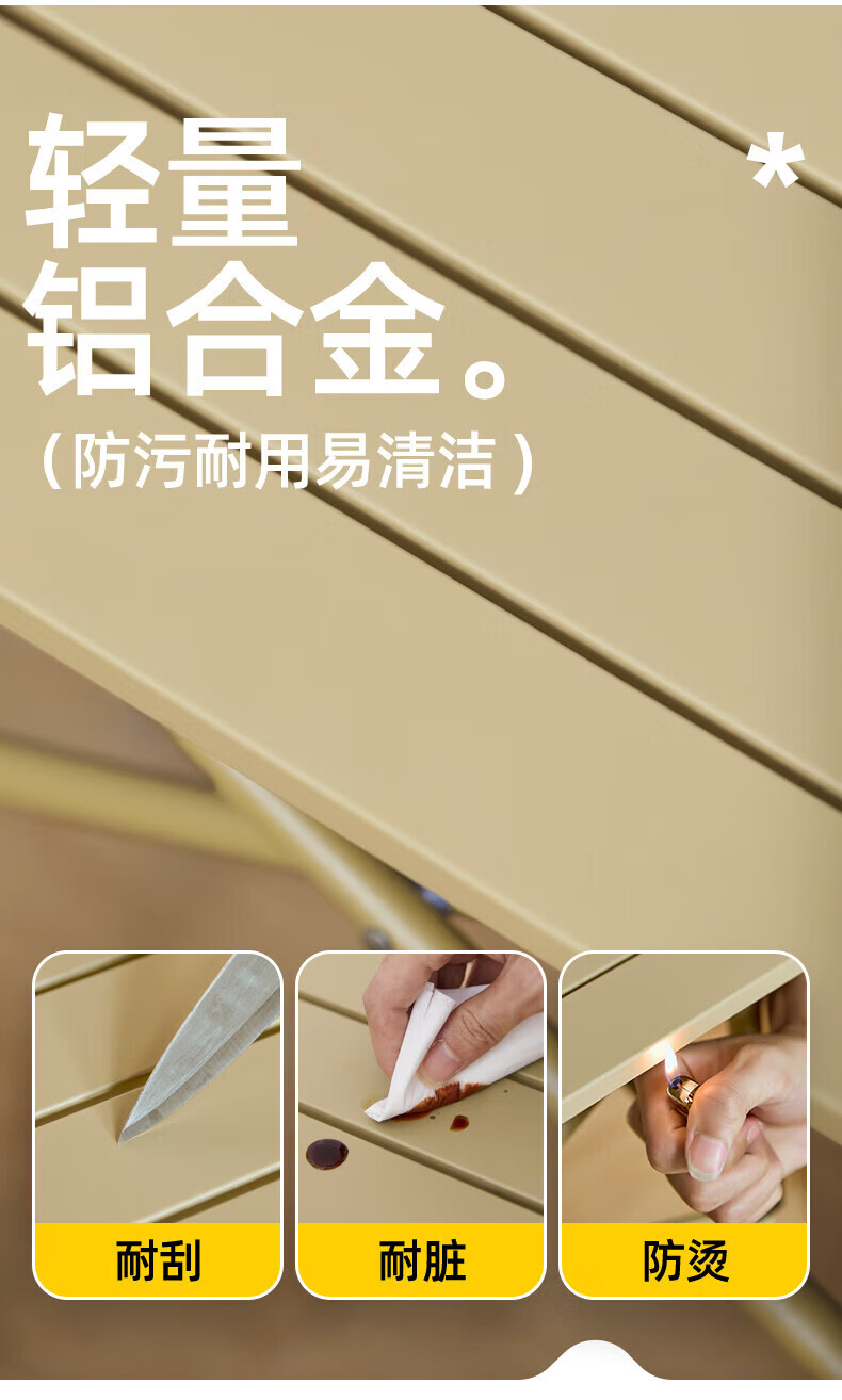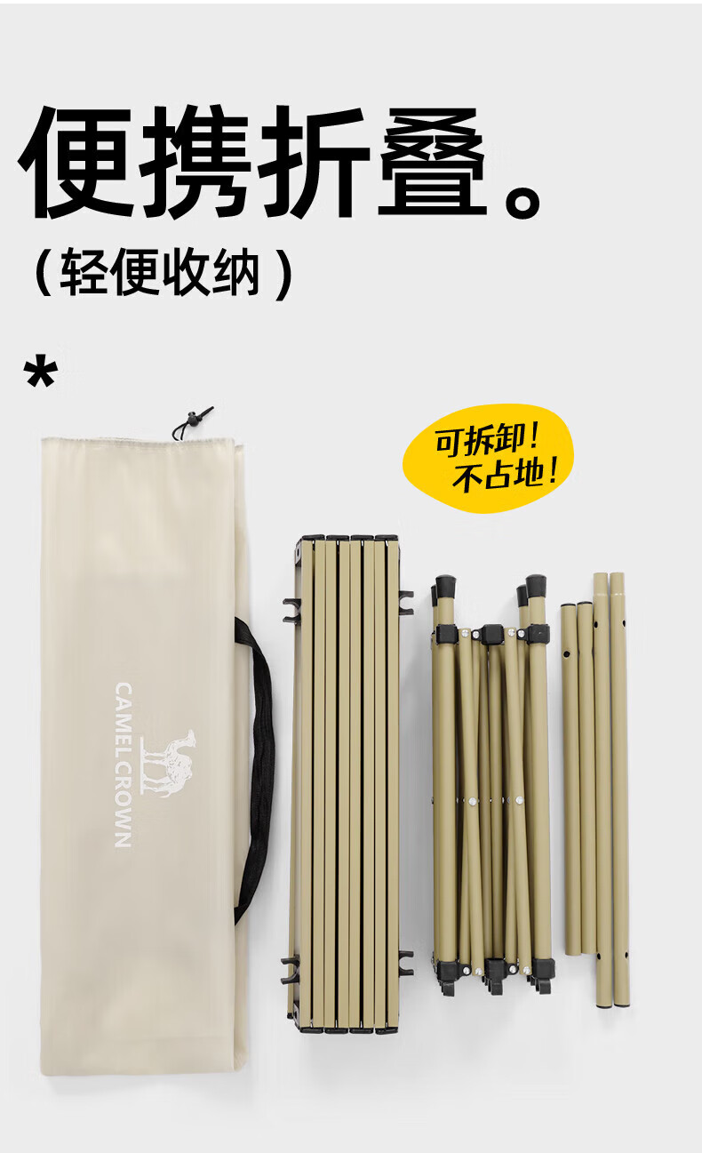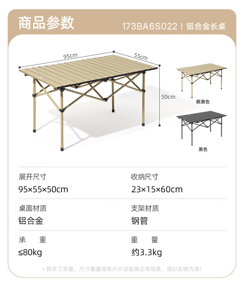 CAMEL户外折叠桌铝合金野餐桌椅桌子露营桌装备蛋卷桌套装 【可爱熊猫铝合金】95CM鹅黄色