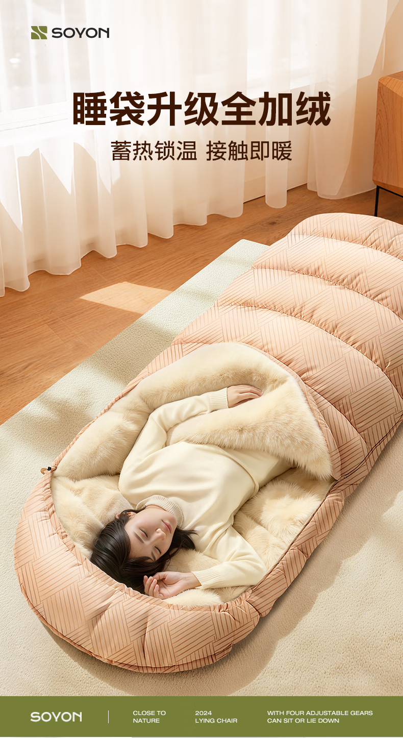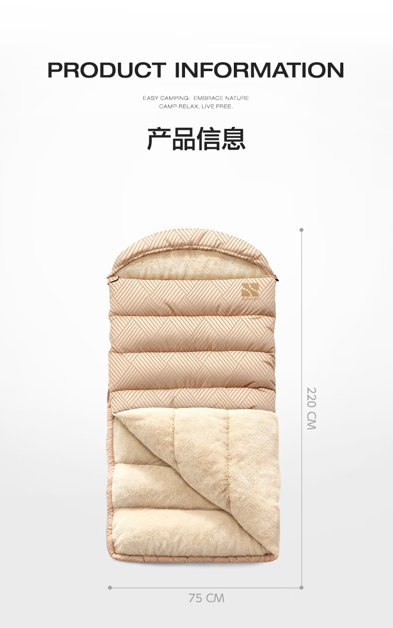 睡袋买回来看着很不错,内里加绒很保暖正好现在就可以用得上,对比几家这家睡袋看起来很厚实,性价比很高