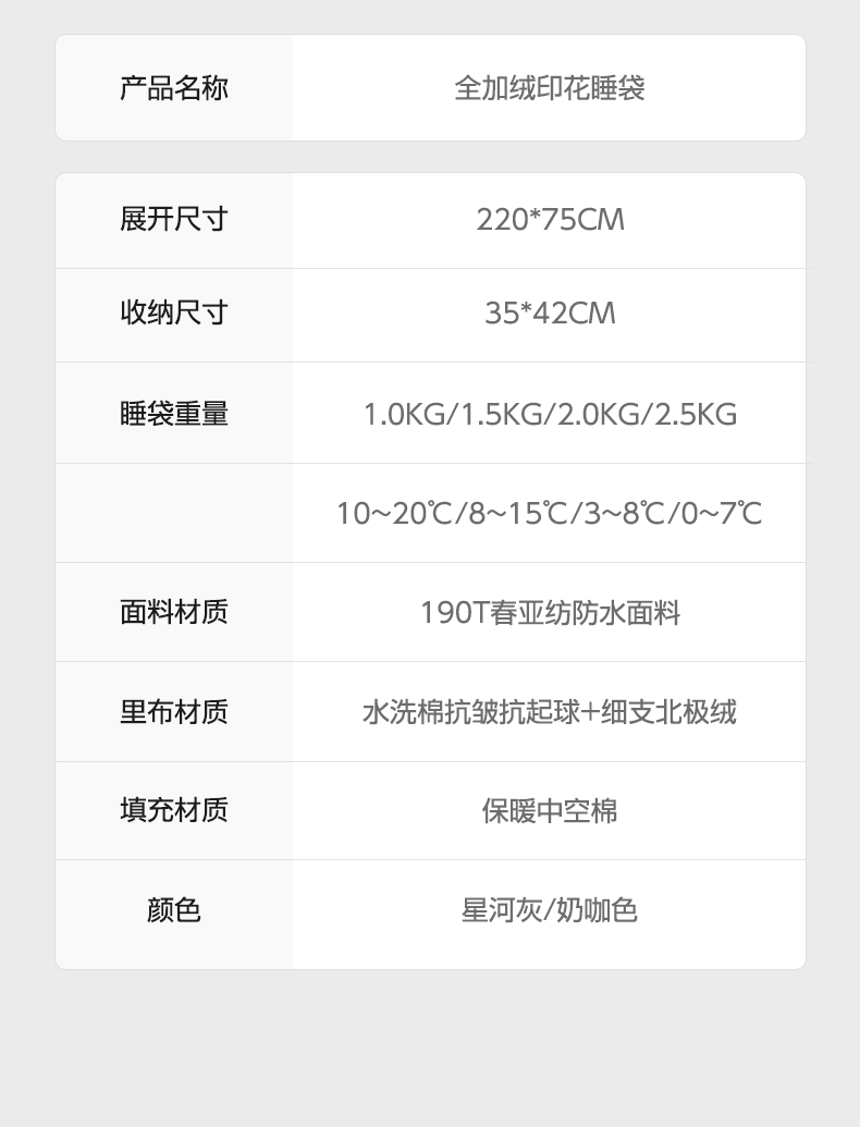 睡袋买来在公司午休用的,很舒服,内里全部加绒,保暖性没得说,绒的品质很好,睡一觉不会掉毛,收起来占用的空间很小,价格对比下来很便宜,买回来很值性价比超级高