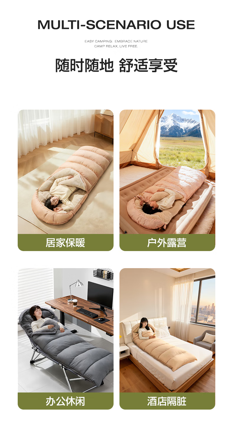 速营睡袋成人加厚冬户外露营酒店隔脏便携式办公室午休车用被子两用 1.0KG奶咖色【10-20℃】