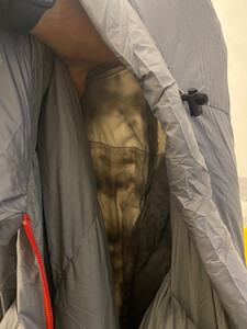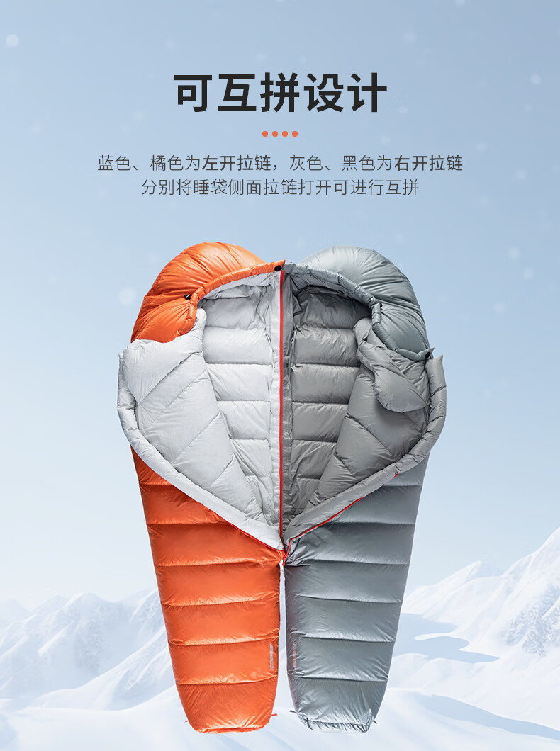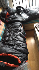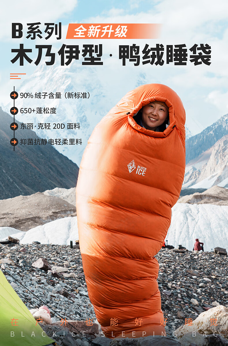 黑冰的睡袋早有耳闻,趁双十一入了两个b700。拿到先摊开使羽绒恢复蓬松。物流包装并不十分友好,两个塑料袋子一套完事。这种羽绒制品一旦划伤外层就整个废了。还有建议商家在包装外面贴个醒目提醒,拆包小心,勿使刀片划伤内物。再来说说商品,首先自我检讨,下单没有说清楚,本来是想买两个一右一左可拼接的,没有跟客服确认,结果发过来两个右开口的。试试看能不能换一个吧。整体做工非常好,我虽然是个户外菜鸟,但也看得出来,从设计,到用料,到走线,完全体现厂家诚意。内衬亲肤,裸睡也不是太大问题。鸭绒选料上乘,摸不到羽毛杆子。外层面料和走线紧实,没有钻绒。还没有经历实践考验,等雨停天晴上天荒坪试试。