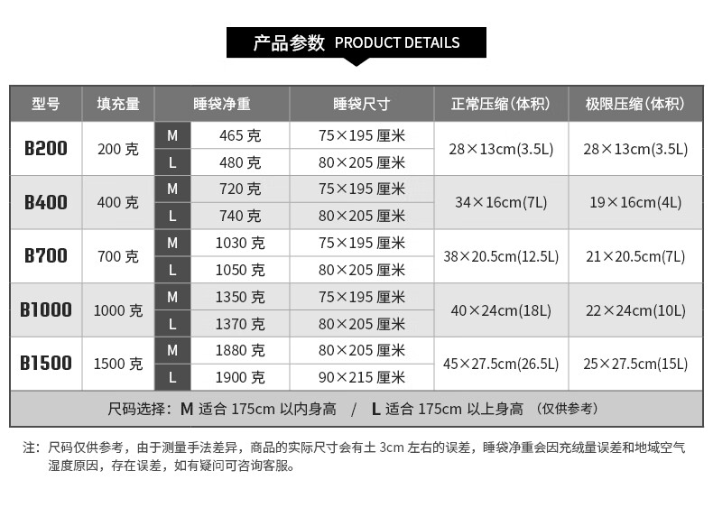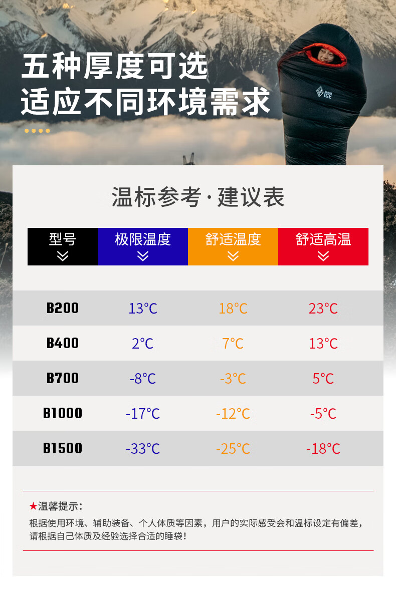 春秋使用,B400够用了,双十一购入两个,检查做工质量都很好,没问到鸭绒味道,好评。不过打开里边的羽绒一坨一坨的,不均匀,不知道是否正常。期待评测