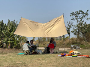 搭建简单,很适宜家庭周末出游,虽然是春天,但太阳还是很毒,出游必备