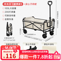 清系 户外露营折叠车野餐车营地车露营装备便捷拖车推车购物 旅游买菜 100L便携款营地车米白