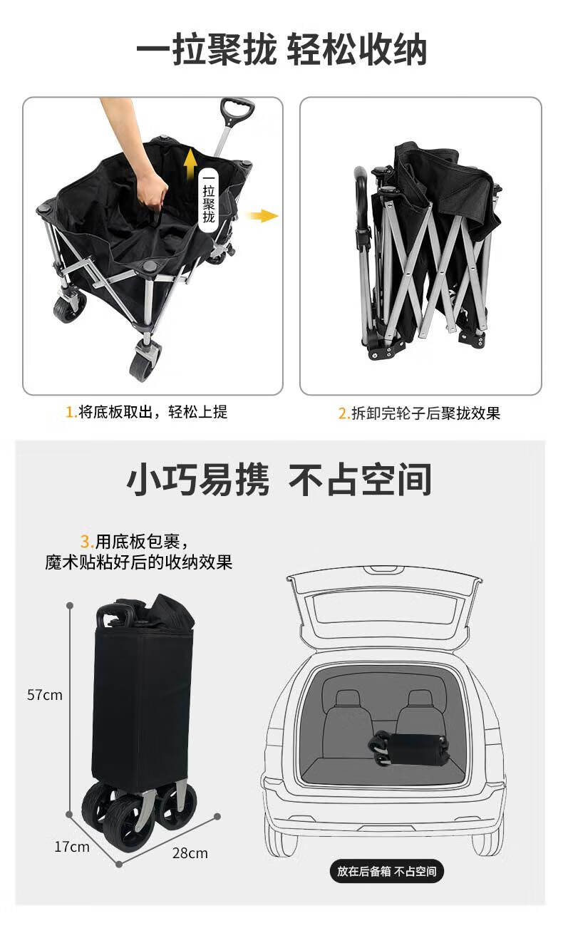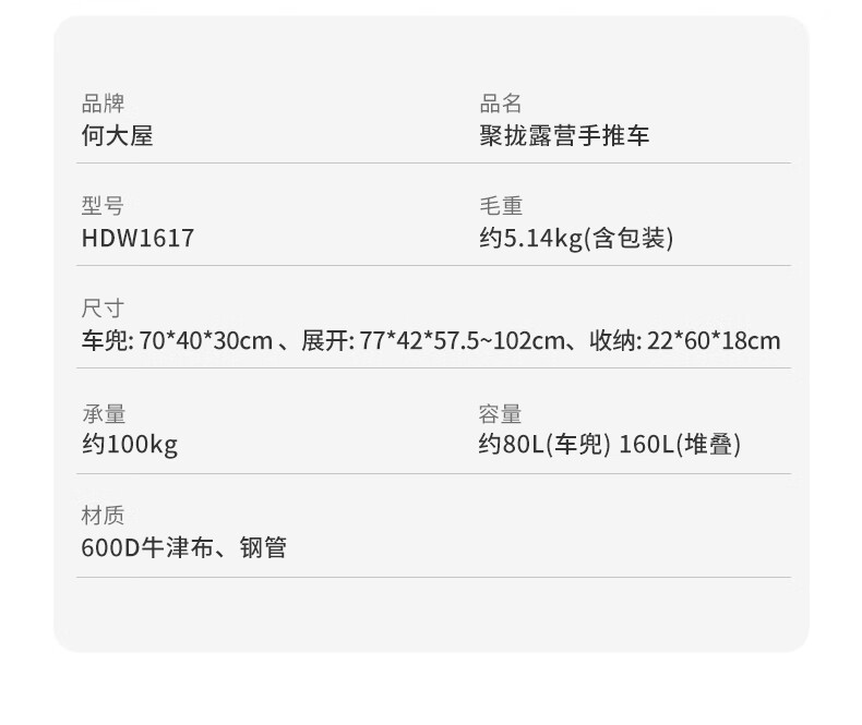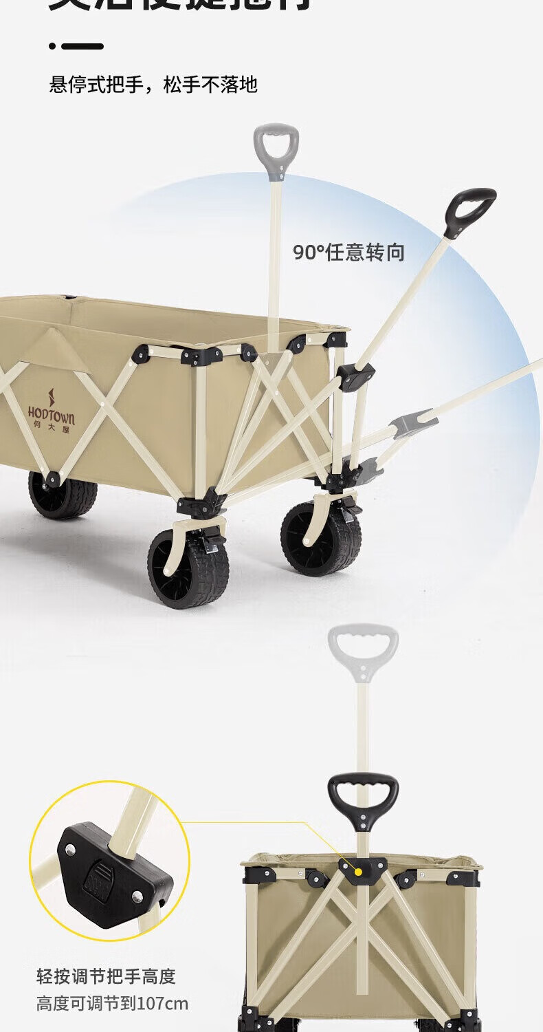 何大屋(Hodtown)露营车折叠推车户外聚拢型露营车营地车野餐车露营装备摆摊买菜 聚拢露营手推车 HDW1617 80L 无刹车
